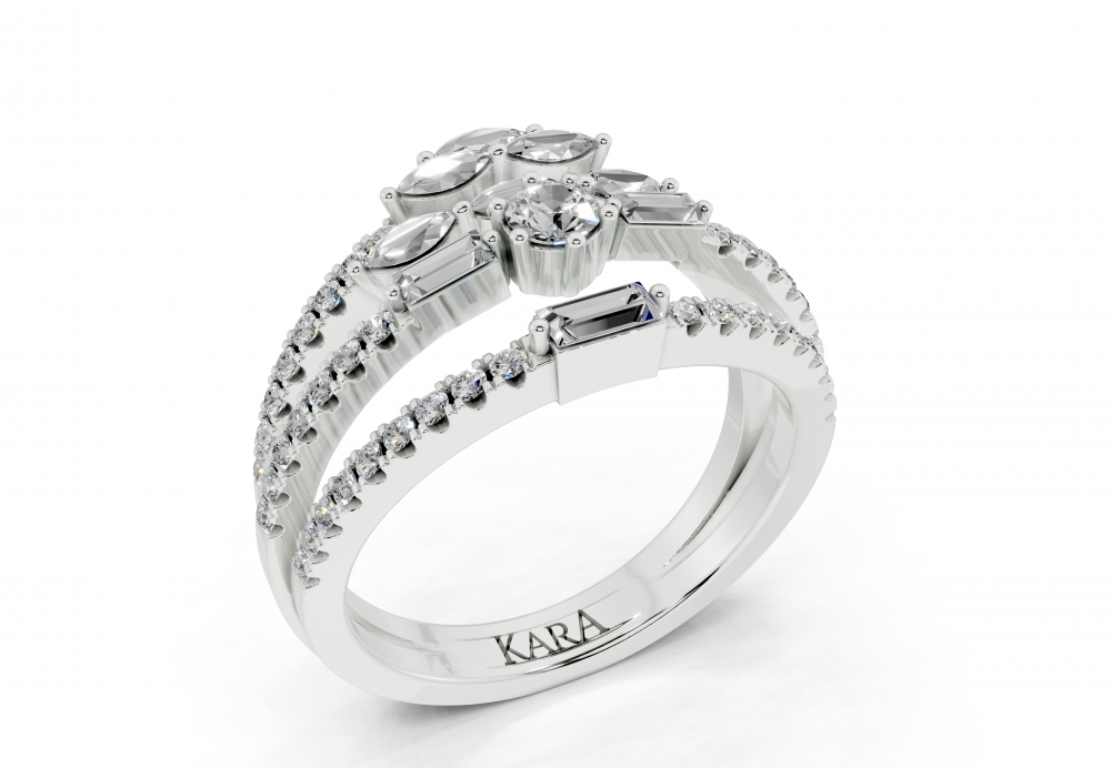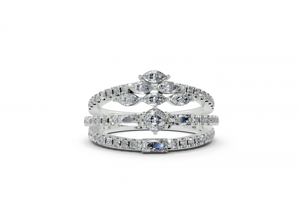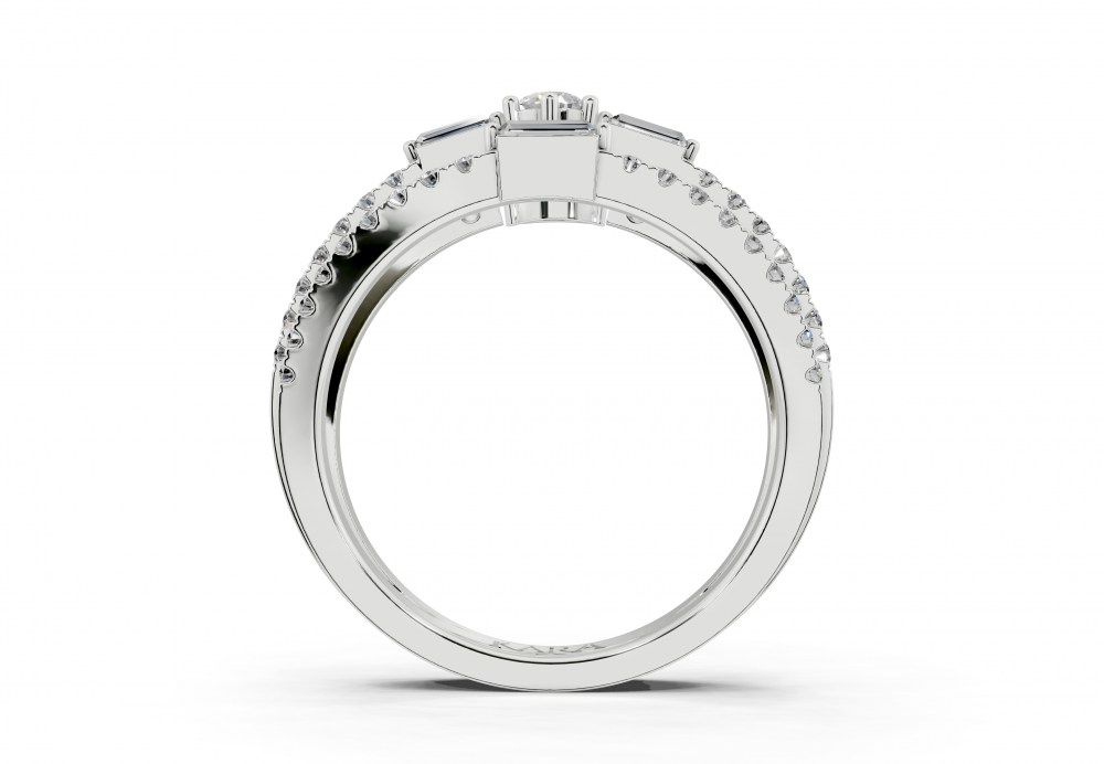 Inel din aur alb de 14K, cu diamante Marquise de 0.22 ct , diamante Baget de 0.16 ct si diamante Rotunde de 0.42 ct. Greutatea inelului este de aproximativ 4.50 grame. Accesati "Specificatii" pentru mai multe detalii despre acest produs.