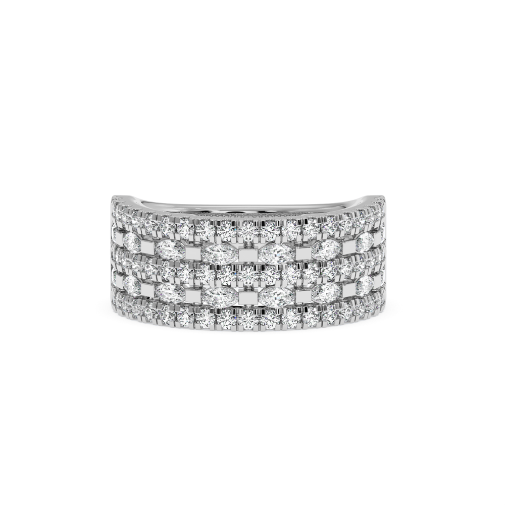 Inel cu diamante din aur alb de 14 K, diamante Marquise de 0.48 ct si diamante rotunde de 0.70 ct. Greutatea aproximativa a inelului este de 5.77 grame.