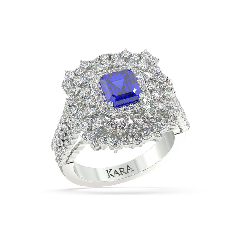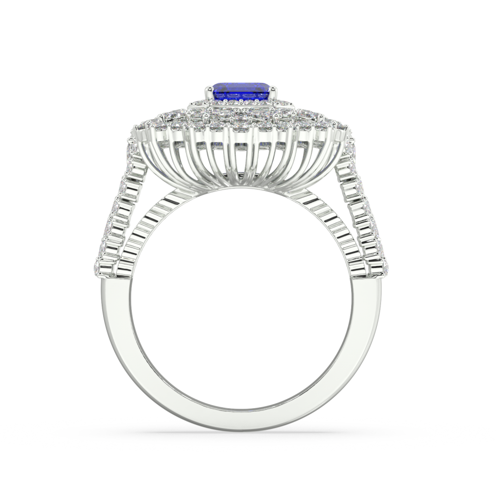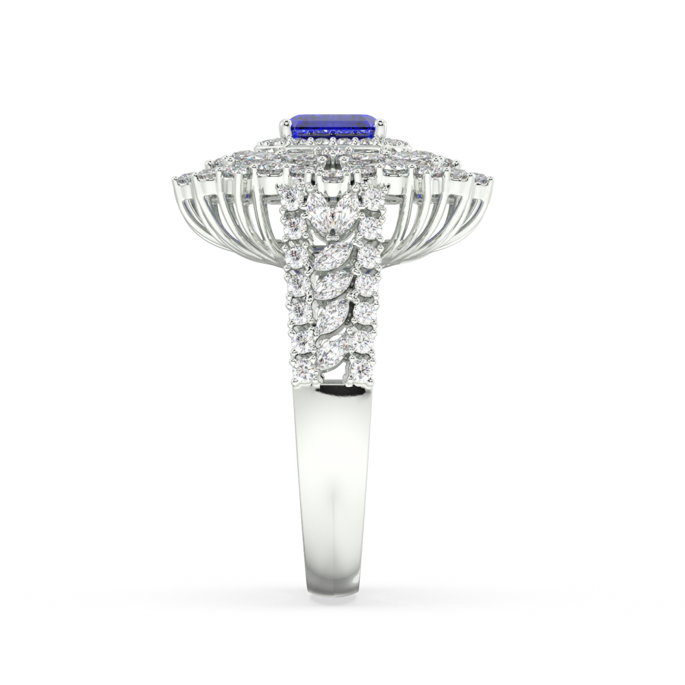 Inel din aur alb de 14K, cu diamante Mix de 1.30 ct si Tanzanite de 1.04 ct. Greutatea inelului este de aproximativ 7.00 grame.