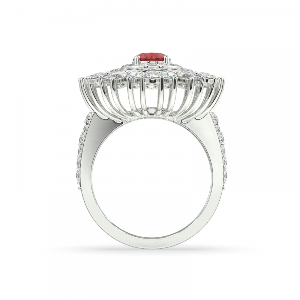 Inel din aur alb de 14K, cu diamante Mix de 2.59 ct si Rubin de 0.92 ct. Greutatea inelului este de aproximativ 7.20 grame.