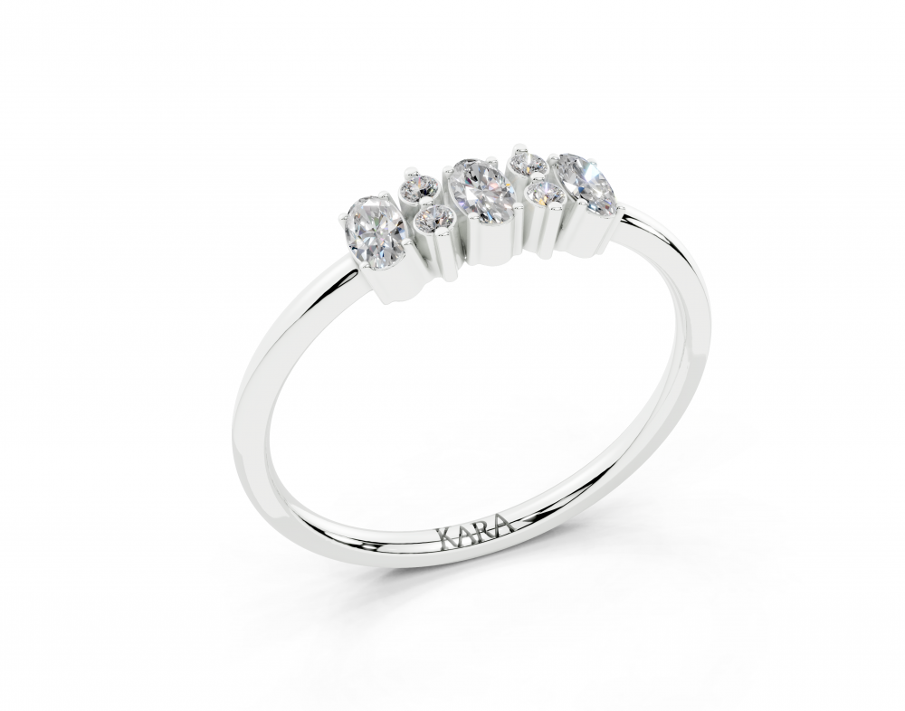 Inel din aur alb de 14K, cu diamante Oval Cut de 0.16ct si diamante rotunde de 0.03ct. Greutatea inelului este de 2.01 grame.