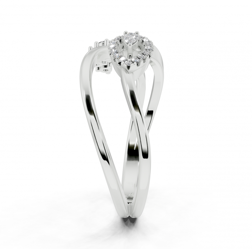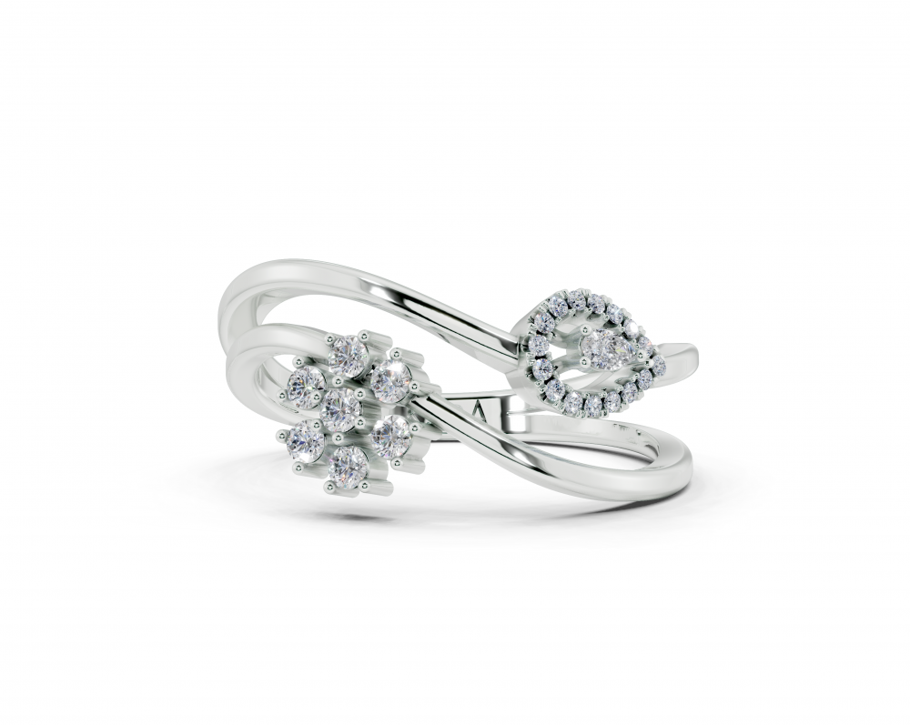 Inel din aur alb de 14K, cu diamante Pear Cut de 0.01 ct si diamante rotunde de 0.14 ct. Greutatea inelului este de aproximativ 2,50 grame.