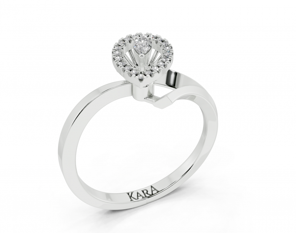 Inel din aur alb de 14K, cu diamante Pear Cut de 0.05ct si diamante rotunde de 0.04ct. Greutatea inelului este de aproximativ 2.50 grame. Inelul se poate face pe comanda si din aur de 18K. Putem modifica design-ul in functie de bugetul dumneavoastra.