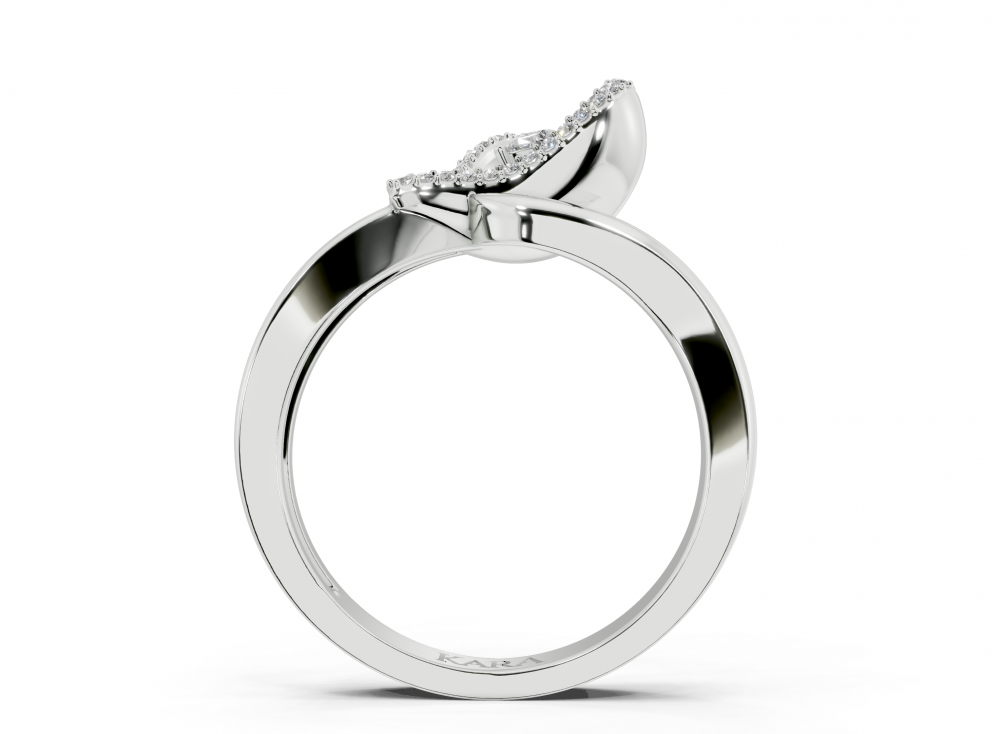 Inel din aur alb de 14K, cu diamante Pear Cut de 0.05ct si diamante rotunde de 0.06ct. Greutatea inelului este de aproximativ 4 grame.