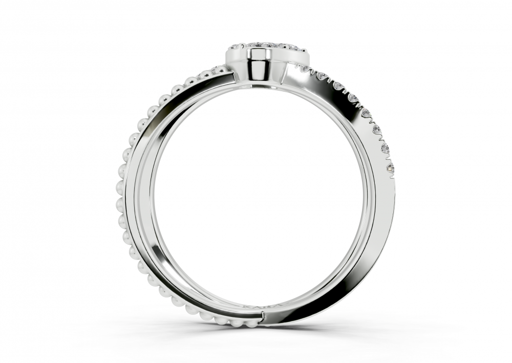 Inel din aur alb de 14K, cu diamante Pear cut de 0,06 ct , Marquise Cut de 0.02 ct, diamante Princess Cut de 0.02 ct si diamante rotunde de 0.14 ct. Greutatea inelului este de aproximativ 3.5 grame.