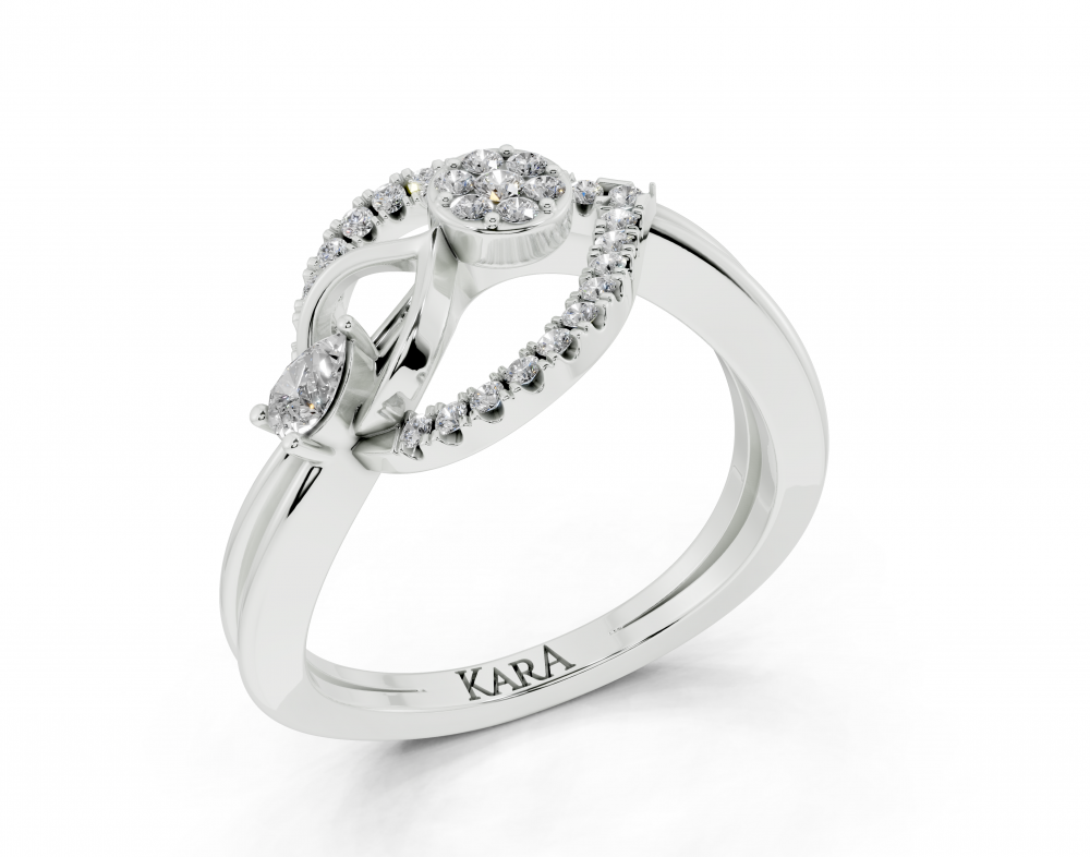 Inel din aur alb de 14K, cu diamante Pear Cut de 0.08 ct si diamante rotunde de 0.16 ct. Greutatea inelului este de aproximativ 3,00 grame.