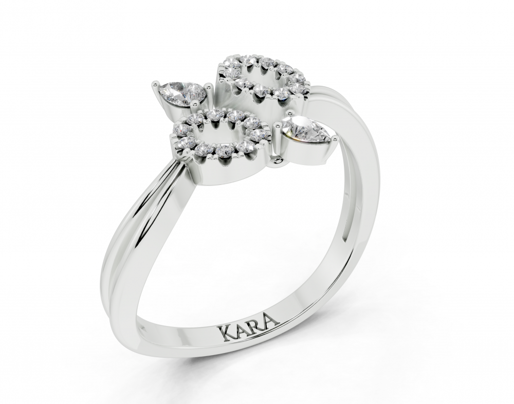Inel din aur alb de 14K, cu diamante Pear Cut de 0.10 ct si diamante rotunde de 0.08 ct. Greutatea inelului este de aproximativ 2.50 grame.