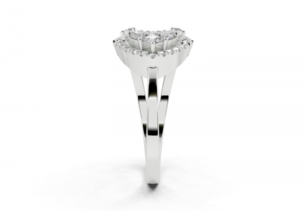 Inel din aur alb de 14K, cu diamante Pear Cut de 0.10ct, un diamant Princess Cut de 0.06ct si diamante rotunde de 0.21ct. Greutatea inelului este de aproximativ 3 grame. Inelul se poate face pe comanda si din aur de 18K. Putem modifica design-ul in functie de bugetul dumneavoastra....