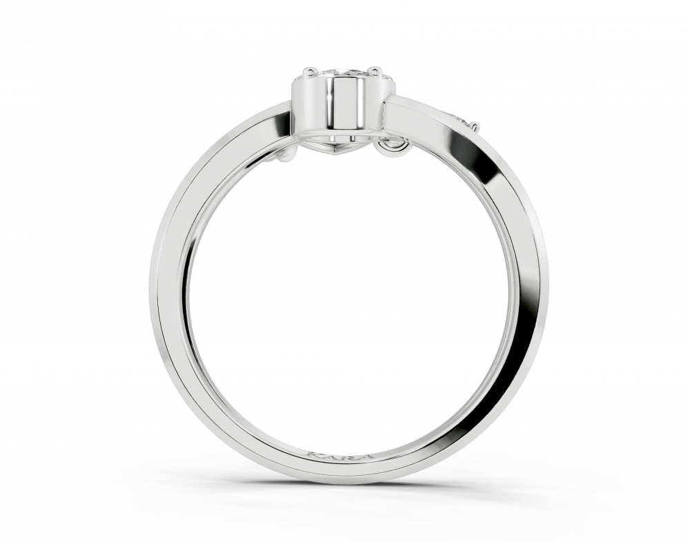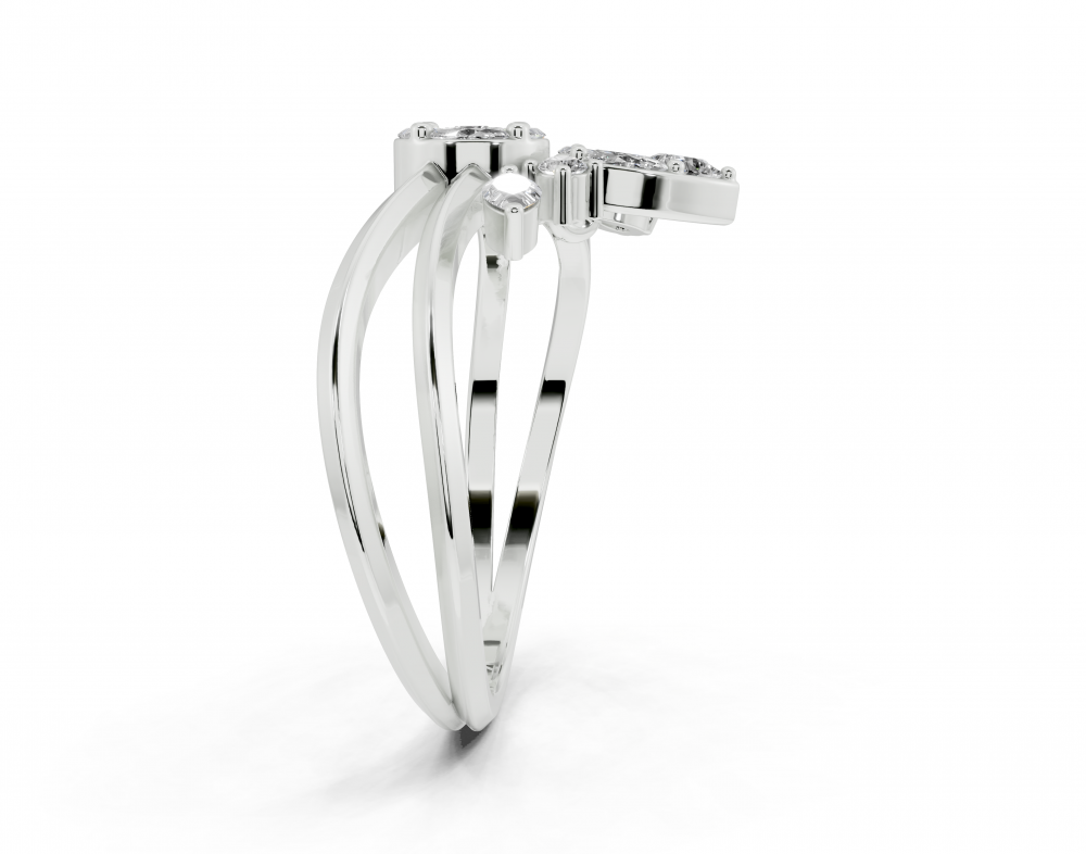 Inel din aur alb de 14K, cu diamante Pear cut de 0,11 ct , Marquise Cut de 0.20 ct, diamante Princess Cut de 0.07 ct si diamante rotunde de 0.01 ct. Greutatea inelului este de aproximativ 3,30 grame.