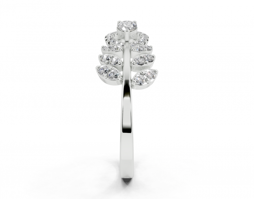 Inel din aur alb de 14K, cu diamante Pear Cut de 0.14 ct si diamante rotunde de 0.22 ct. Greutatea inelului este de aproximativ 2,50 grame.