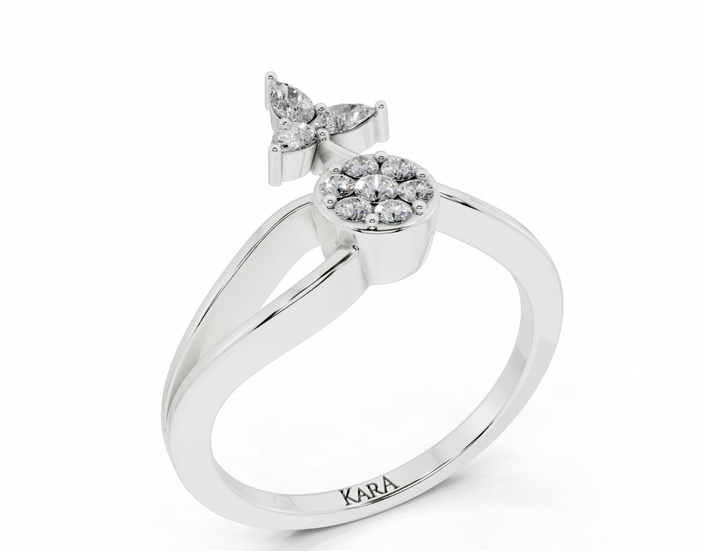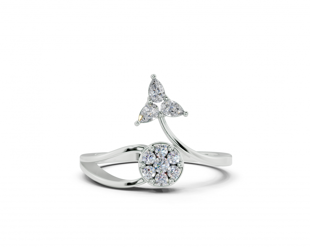 Inel din aur alb de 14K, cu diamante Pear Cut de 0.15 ct si diamante rotunde de 0.10 ct. Greutatea inelului este de aproximativ 2,00 grame.