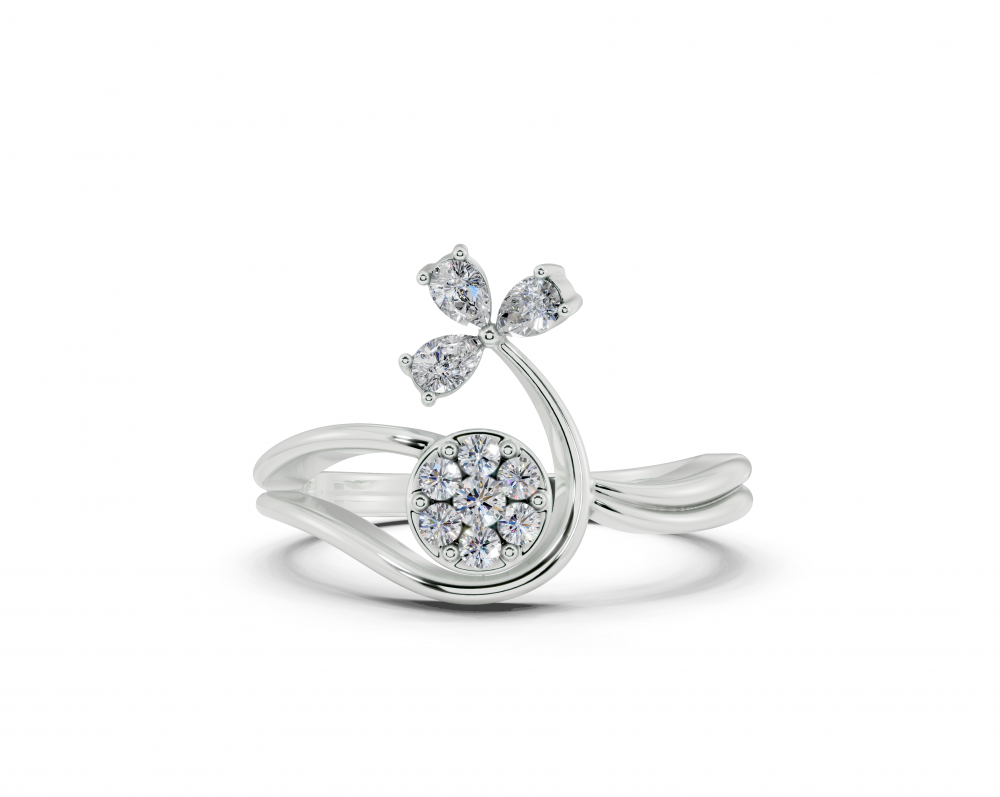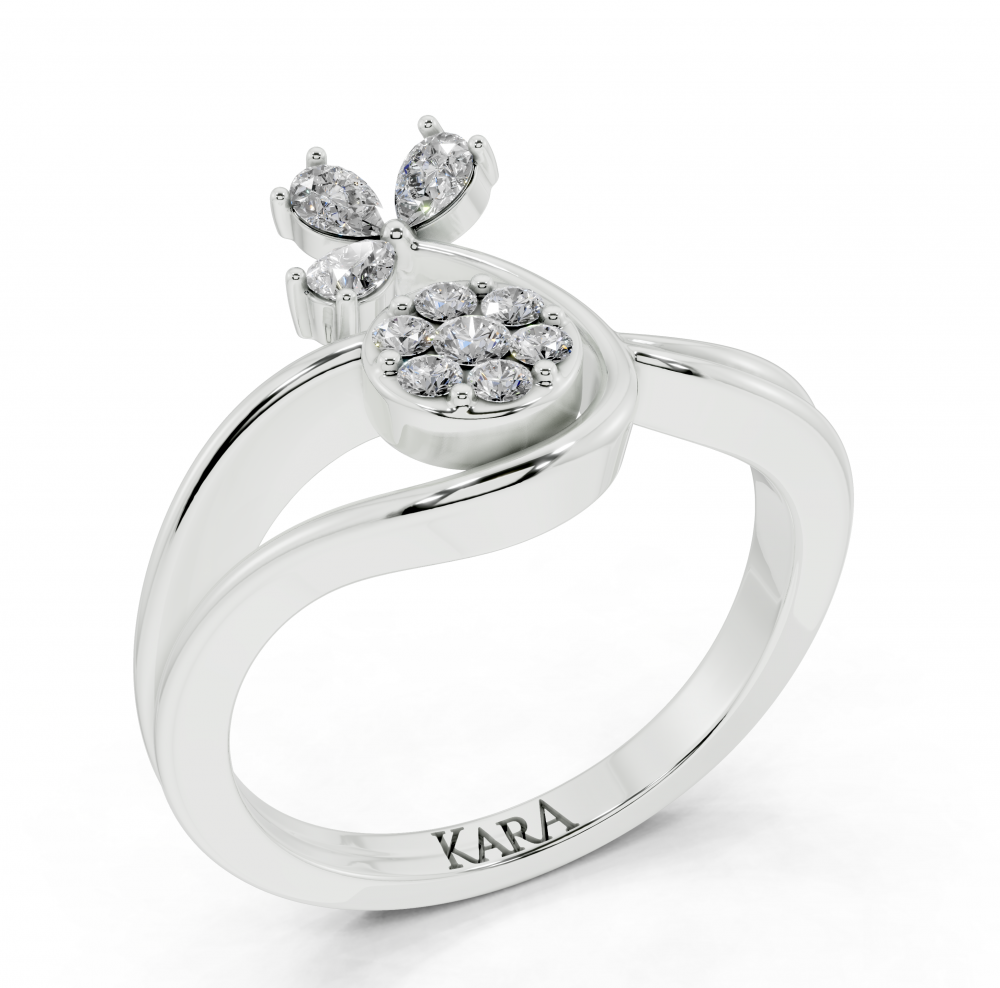 Inel din aur alb de 14K, cu diamante Pear Cut de 0.16 ct si diamante rotunde de 0.10 ct. Greutatea inelului este de aproximativ 3,00 grame.