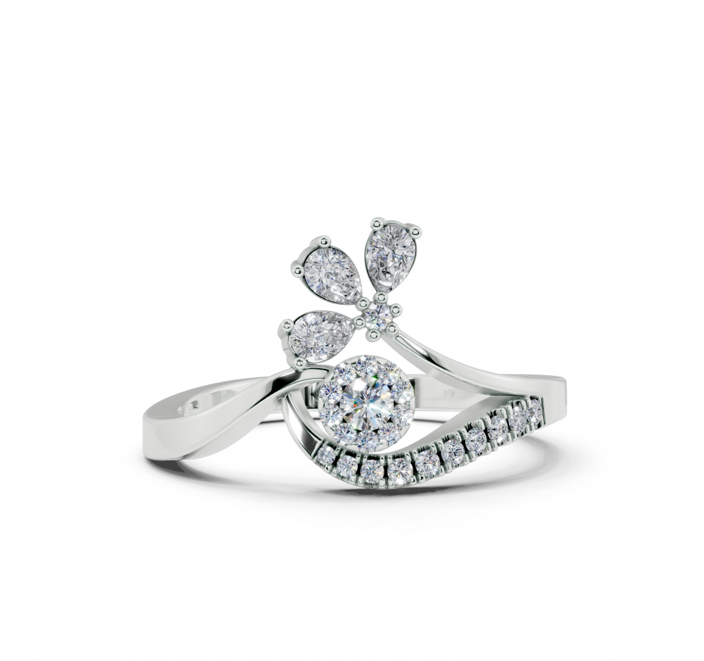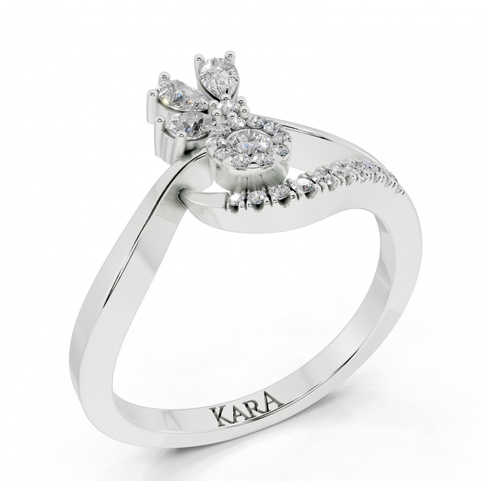 Inel din aur alb de 14K, cu diamante Pear de 0.16 ct. si diamante Rotunde de 0.12 ct. Greutatea inelului este de aproximativ 2.50 grame.