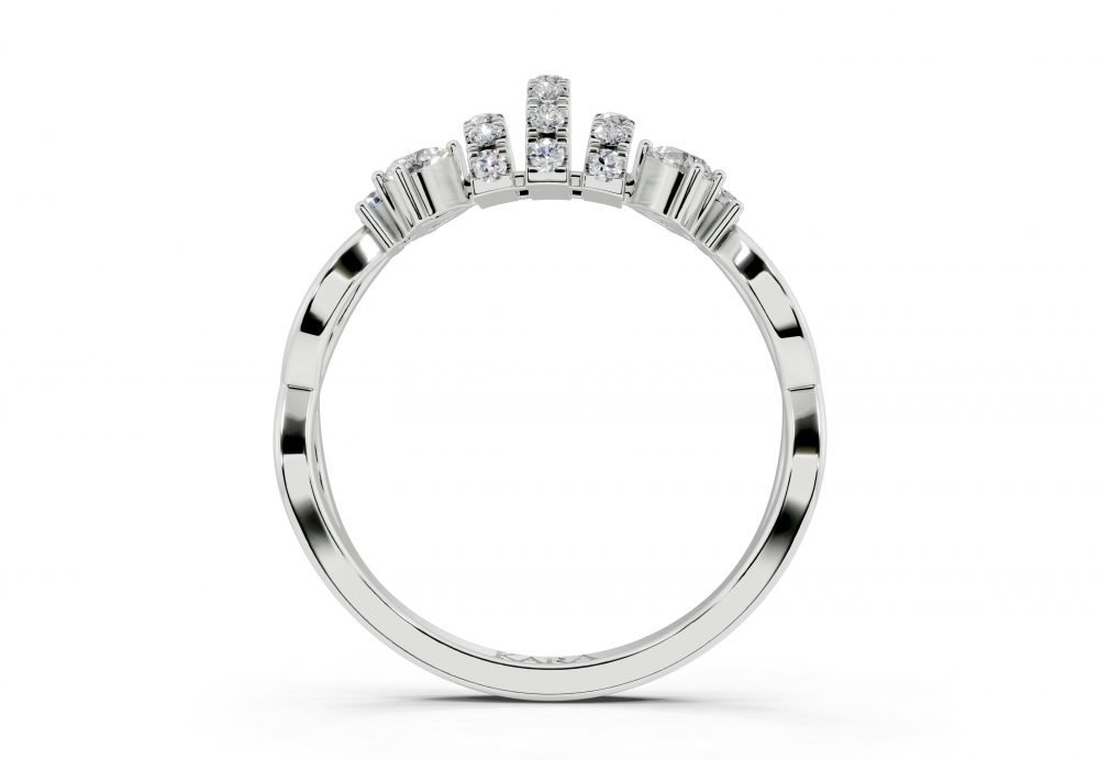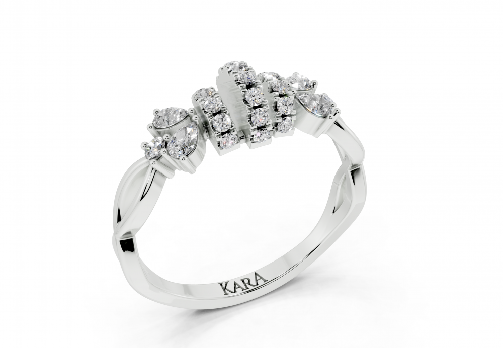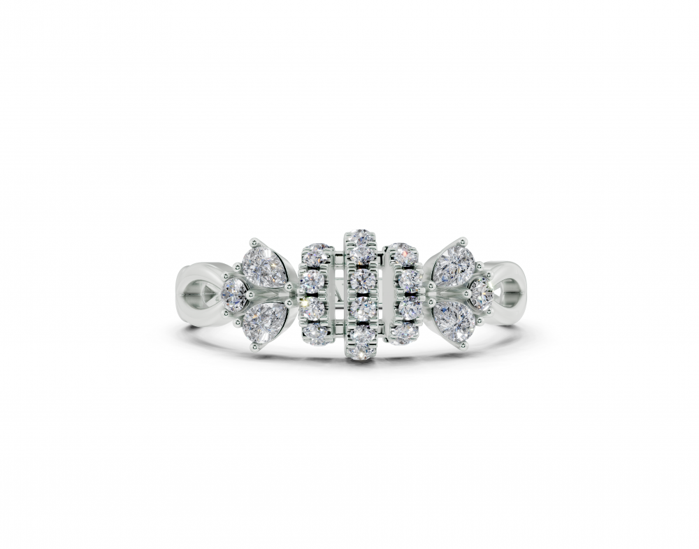 Inel din aur alb de 14K, cu diamante Pear de 0.16 ct. si diamante Rotunde de 0.17 ct. Greutatea inelului este de aproximativ 2.50 grame.