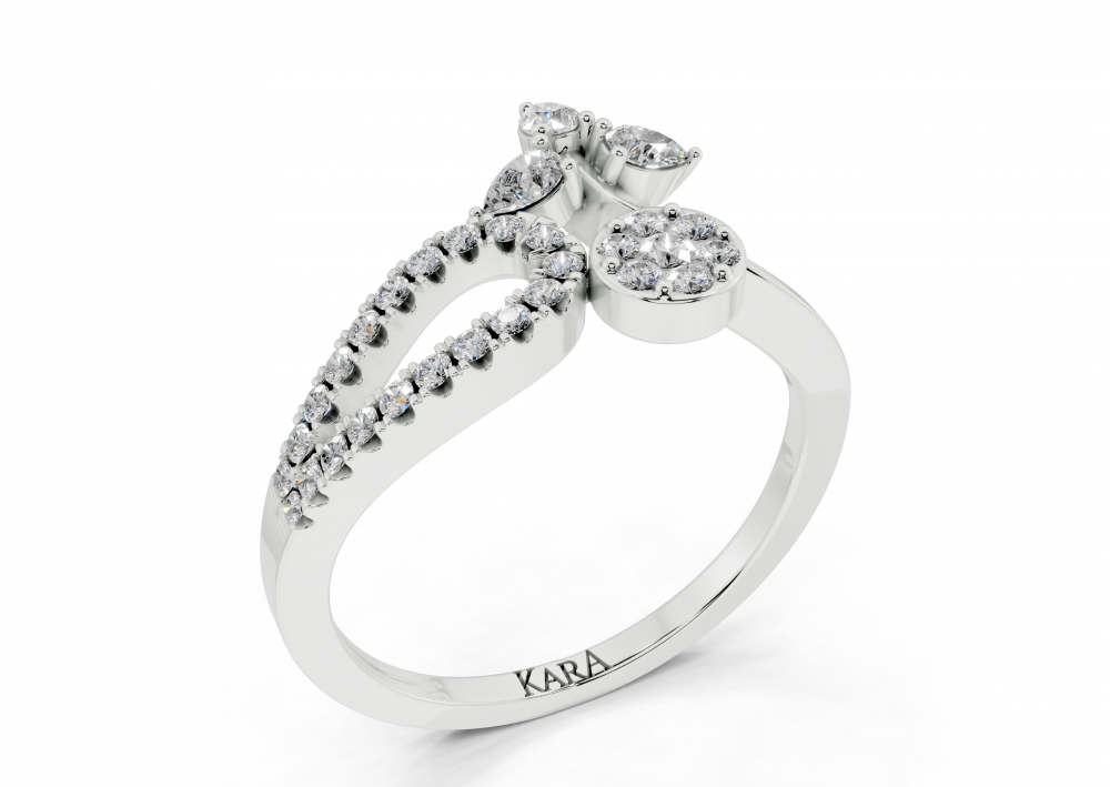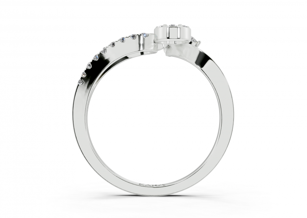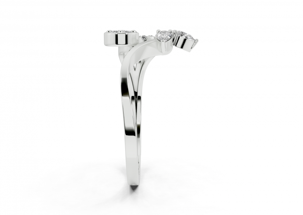 Inel din aur alb de 14K, cu diamante Pear Cut de 0.16ct si diamante rotunde de 0.19ct. Greutatea inelului este de aproximativ 2.00 grame.