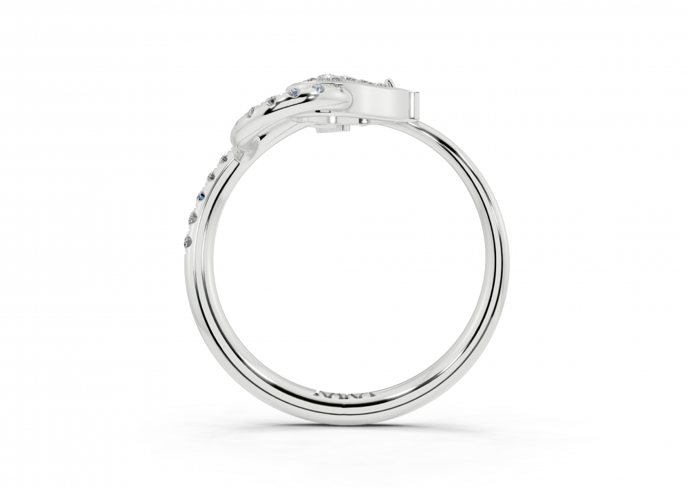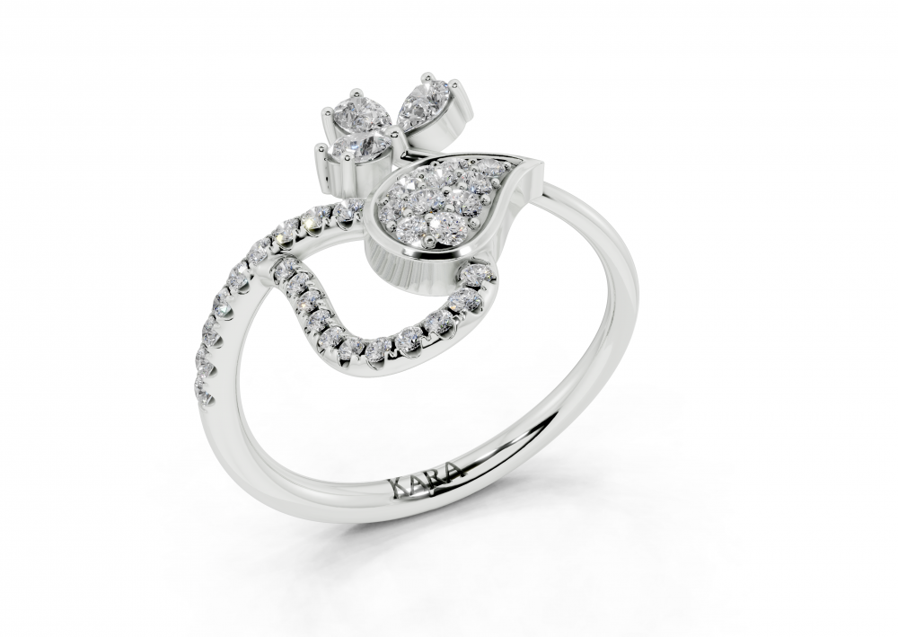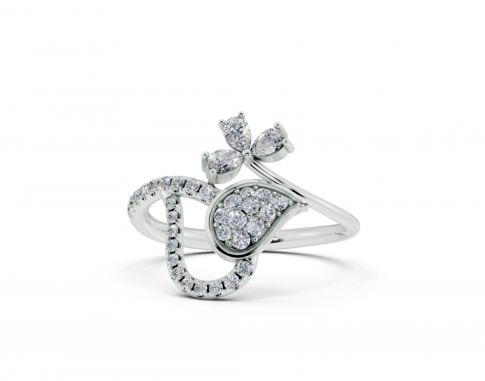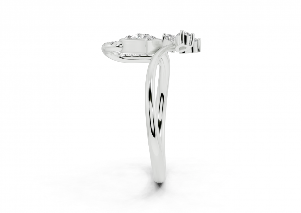 Inel din aur alb de 14K, cu diamante Pear Cut de 0.16ct si diamante rotunde de 0.21ct. Greutatea inelului este de aproximativ 2.20 grame.