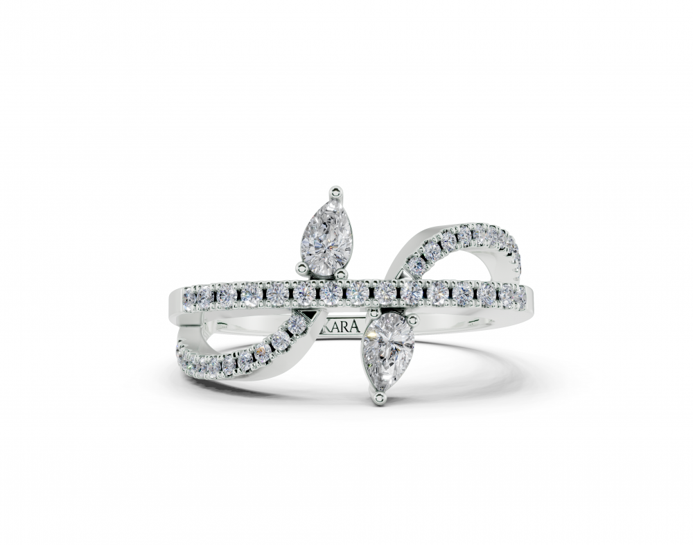 Inel din aur alb de 14K, cu diamante Pear Cut de 0.17ct si diamante rotunde de 0.17ct. Greutatea inelului este de aproximativ 3 grame.
