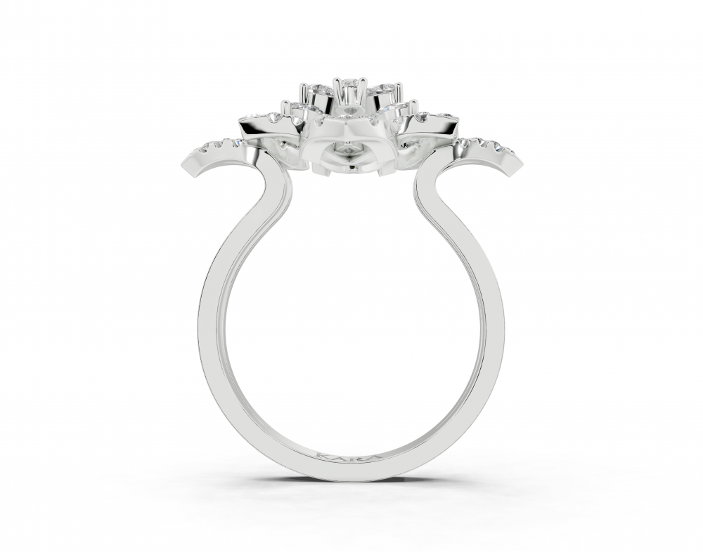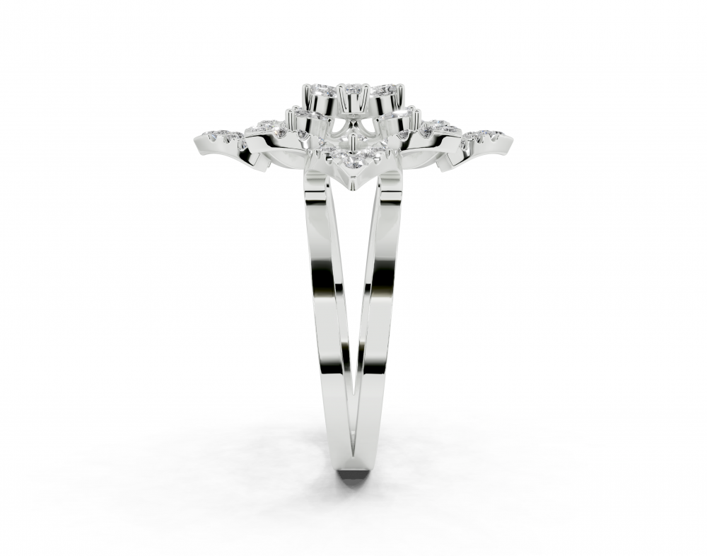 Inel din aur alb de 14K, cu diamante Pear Cut de 0.21ct, diamante Marquise Cut de 0.21ct si diamante rotunde de 0.31ct. Greutatea inelului este de aproximativ 4.50 grame.
