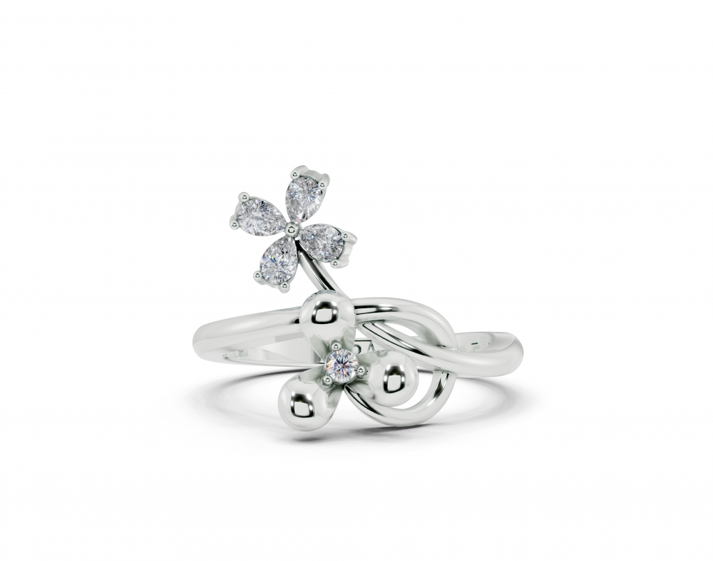 Inel din aur alb de 14K, cu diamante Pear Cut de 0.21ct si diamante rotunde de 0.02ct. Greutatea inelului este de aproximativ 3.50 grame.