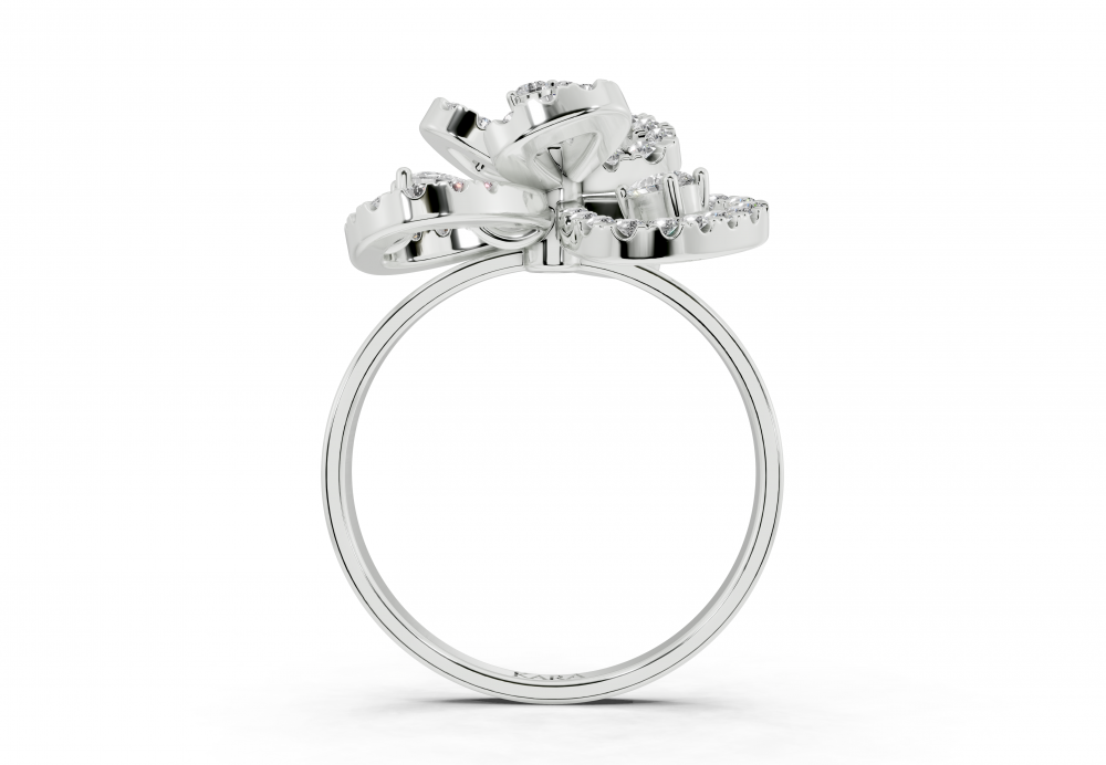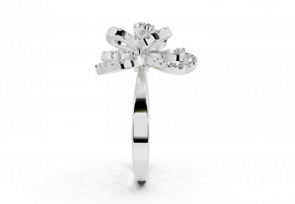 Inel din aur alb de 14K, cu diamante Pear Cut de 0.21ct si diamante rotunde de 0.41ct. Greutatea inelului este de aproximativ 4 grame.