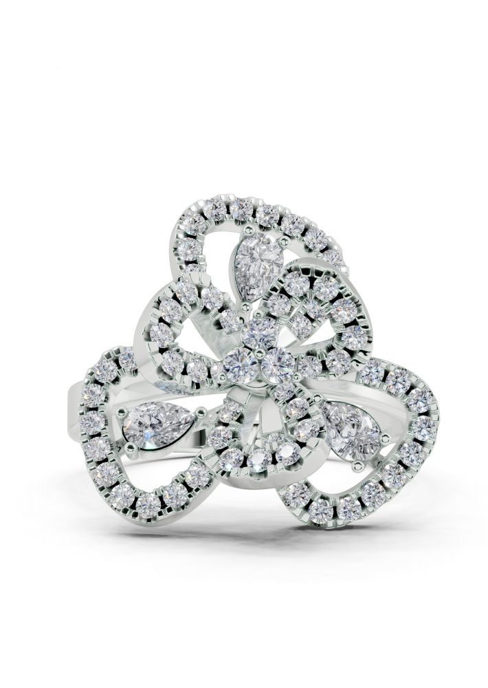 Inel din aur alb de 14K, cu diamante Pear Cut de 0.21ct si diamante rotunde de 0.41ct. Greutatea inelului este de aproximativ 4.50 grame. Inelul se poate face pe comanda si din aur de 18K. Putem modifica design-ul in functie de bugetul dumneavoastra.