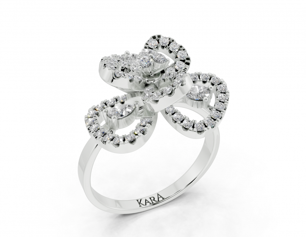 Inel din aur alb de 14K, cu diamante Pear Cut de 0.21ct si diamante rotunde de 0.41ct. Greutatea inelului este de aproximativ 4.50 grame.