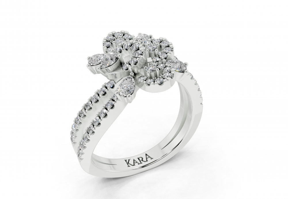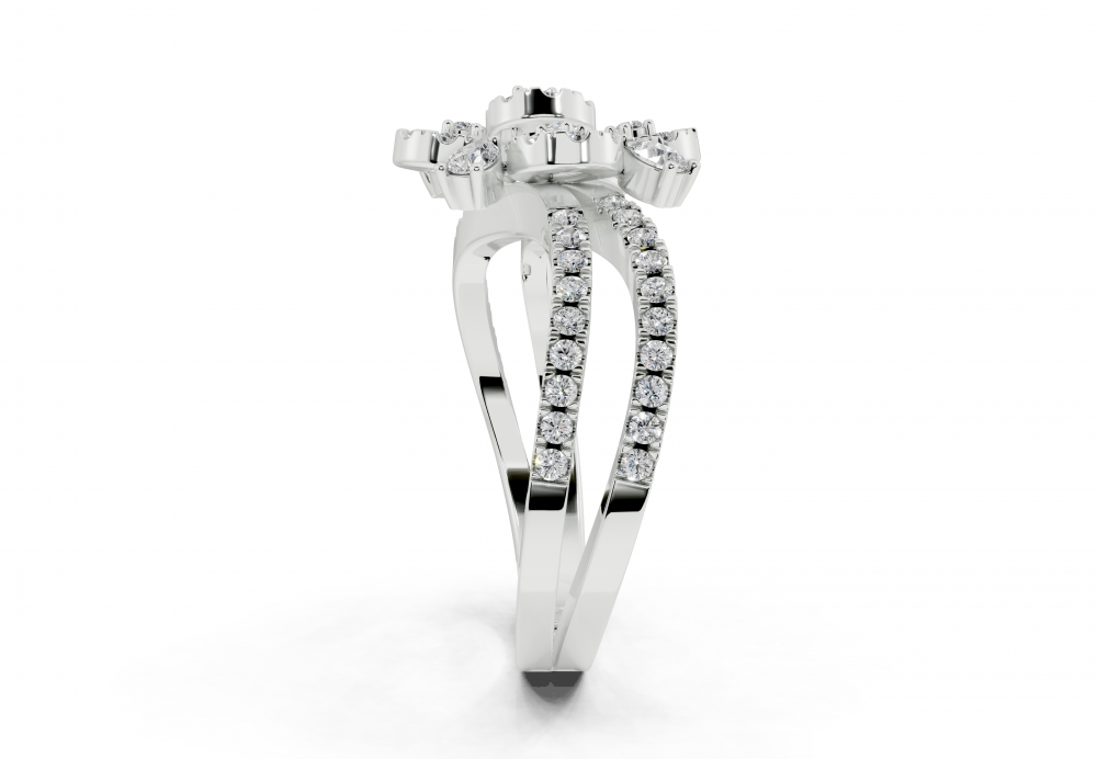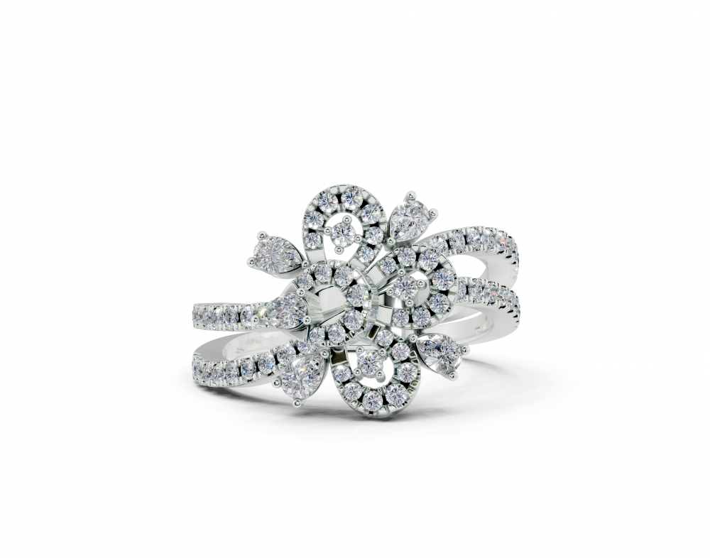 Inel din aur alb de 14K, cu diamante Pear Cut de 0.25ct. si diamante rotunde de 0.39ct. Greutatea inelului este de aproximativ 4.50 grame. Accesati "Specificatii" pentru mai multe detalii despre acest produs.