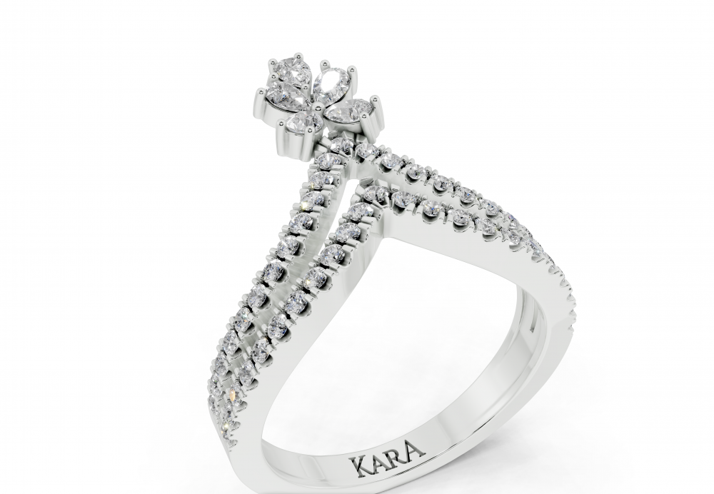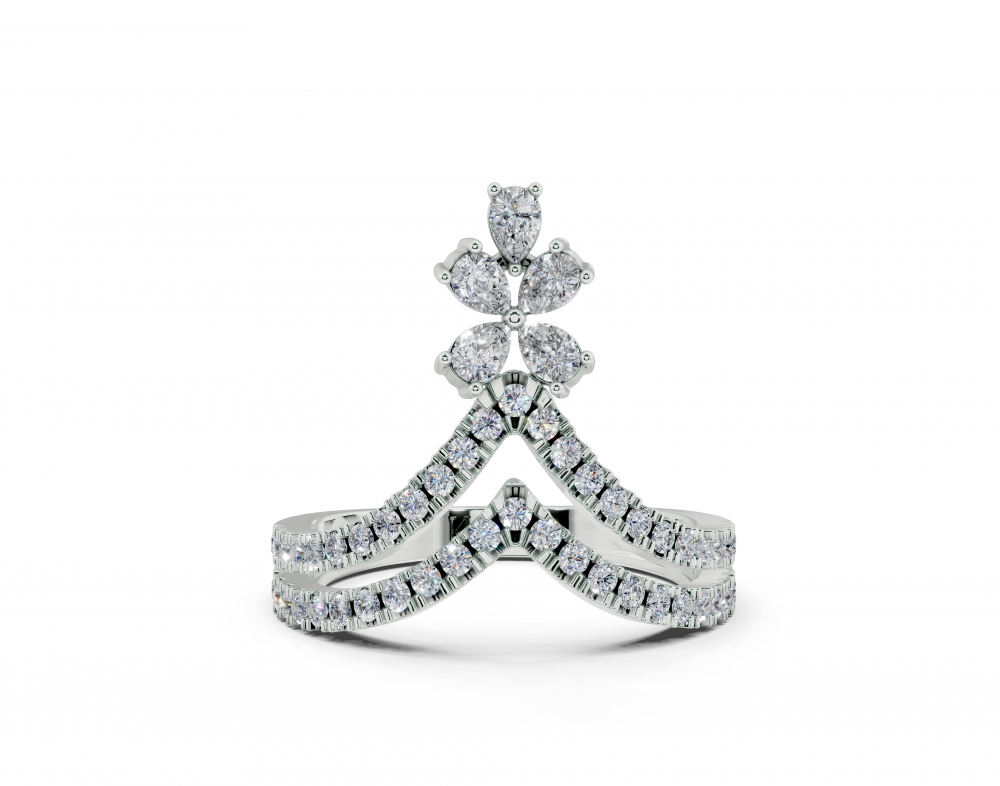 Inel din aur alb de 14K, cu diamante Pear de 0.26 ct. si diamante rotunde de 0.40ct. Greutatea inelului este de aproximativ 3 grame.