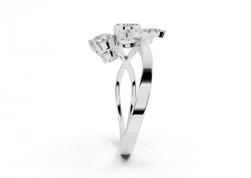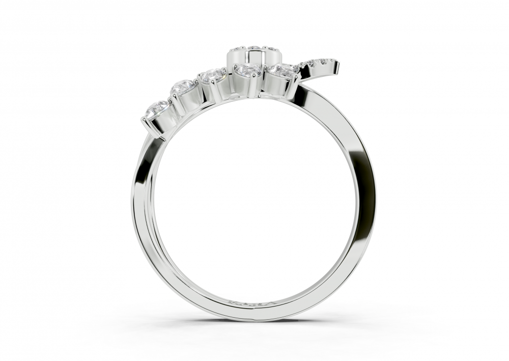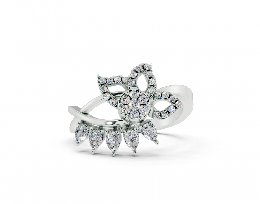 Inel din aur alb de 14K, cu diamante Pear Cut de 0.28ct si diamante rotunde de 0.14ct. Greutatea inelului este de aproximativ 3.00 grame.