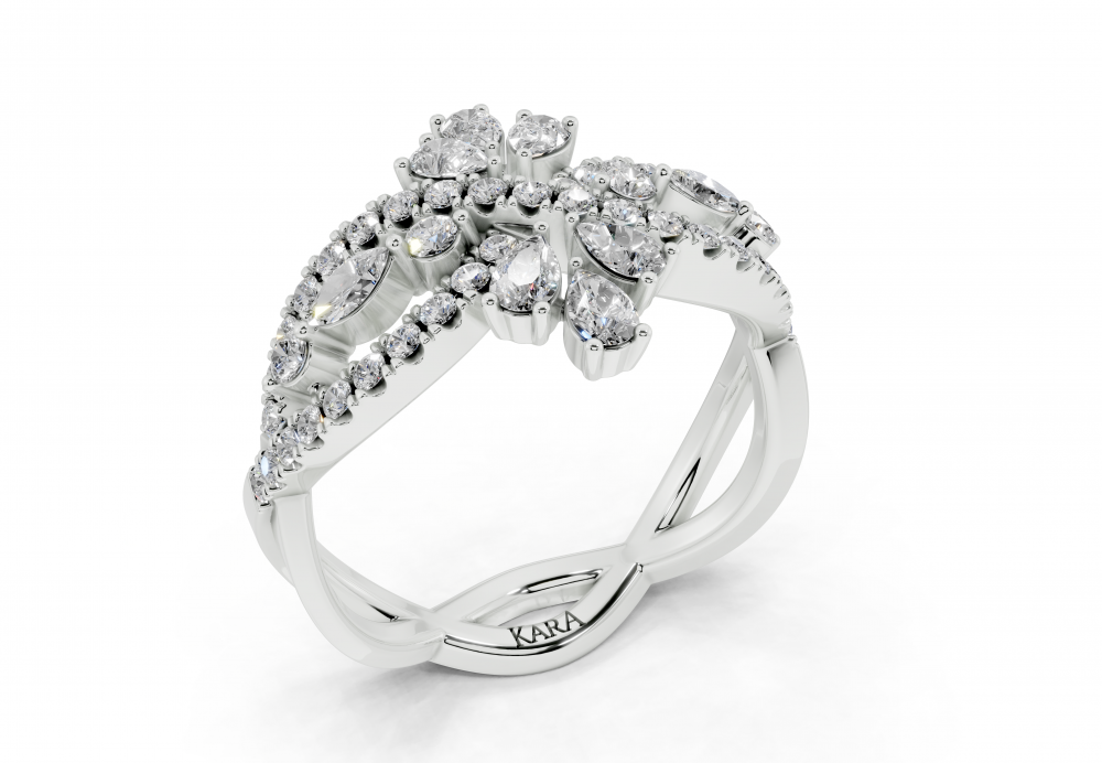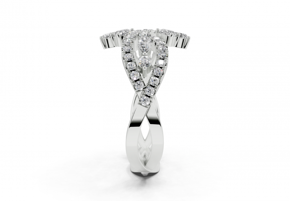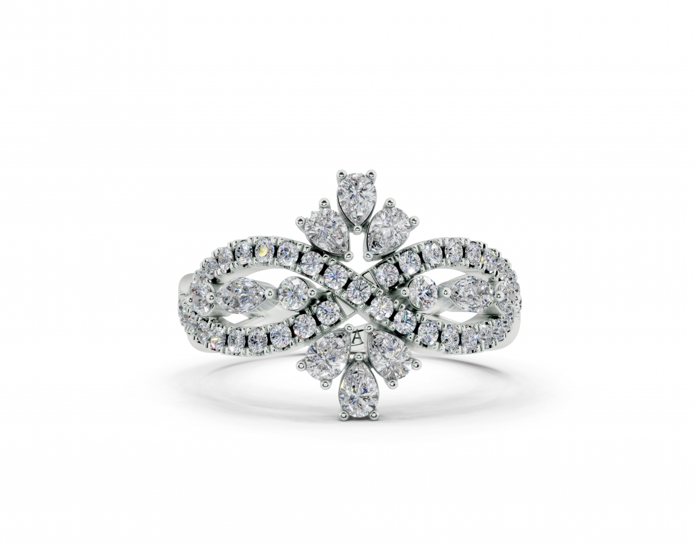 Inel din aur alb de 14K, cu diamante Pear Cut de 0.31ct, diamante Marquise Cut de 0.07ct. si diamante rotunde de 0.36ct. Greutatea inelului este de aproximativ 4 grame.