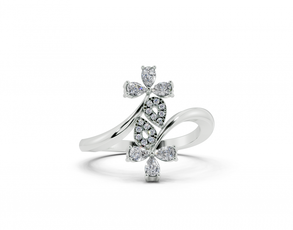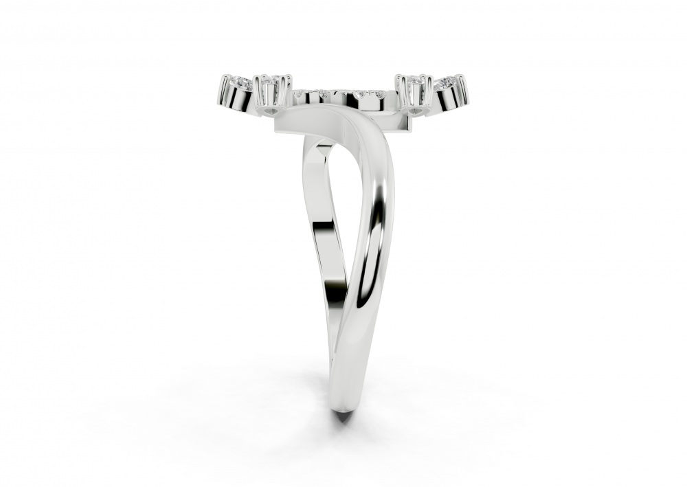 Inel din aur alb de 14K, cu diamante Marquise Cut de 0.31ct si diamante rotunde de 0.04ct. Greutatea inelului este de aproximativ 2.50 grame.