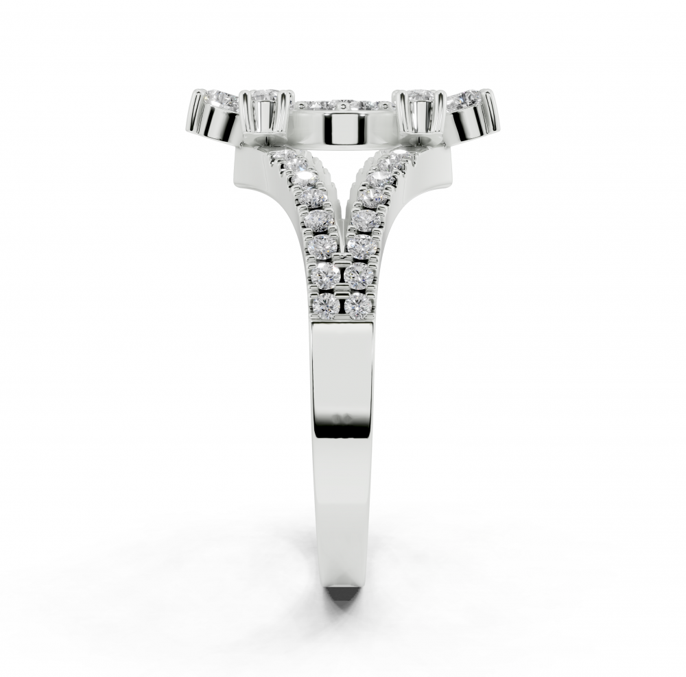 Inel din aur alb de 14K, cu diamante Pear Cut de 0.31 ct si diamante rotunde de 0.30 ct. Greutatea inelului este de aproximativ 3.50 grame.