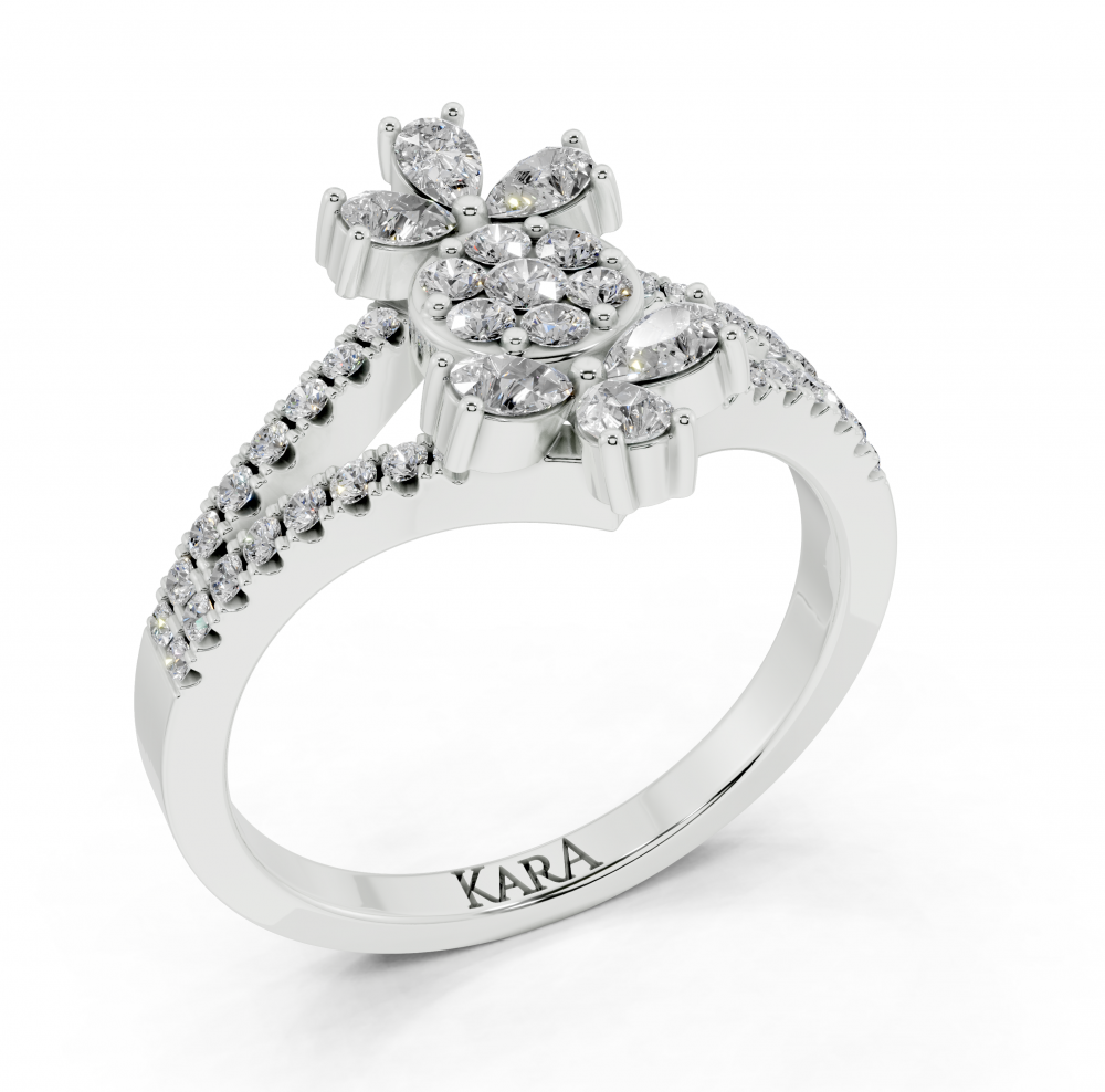 Inel din aur alb de 14K, cu diamante Pear Cut de 0.31 ct si diamante rotunde de 0.30 ct. Greutatea inelului este de aproximativ 3.50 grame. Inelul se poate face pe comanda si din aur de 18K. Putem modifica design-ul in functie de bugetul dumneavoastra.