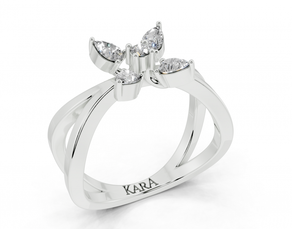 Inel din aur alb de 14K, cu diamante Pear Cut de 0.33 ct si diamante rotunde de 0.03 ct. Greutatea inelului este de aproximativ 4,00 grame. Inelul se poate face pe comanda si din aur de 18K. Putem modifica design-ul in functie de bugetul dumneavoastra.