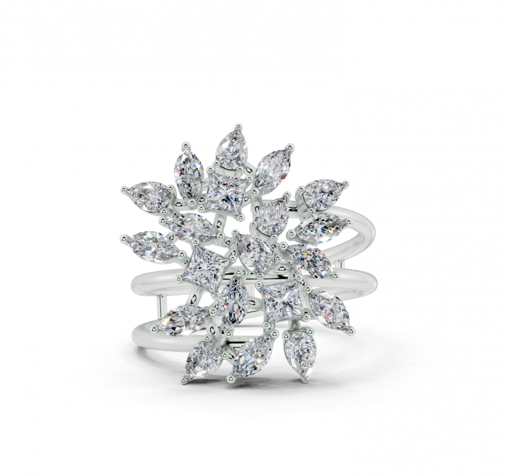 Inel din aur alb de 14K, cu diamante Pear Cut de 0.36ct, diamante Marquise Cut de 0.37ct si diamante Princess Cut de 0.25ct. Greutatea inelului este de aproximativ 4 grame. Inelul se poate face pe comanda si din aur de 18K. Putem modifica design-ul in functie de bugetul dumneavoastra.