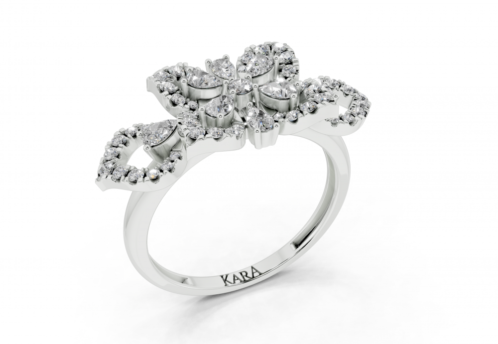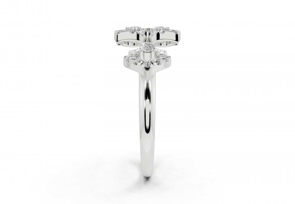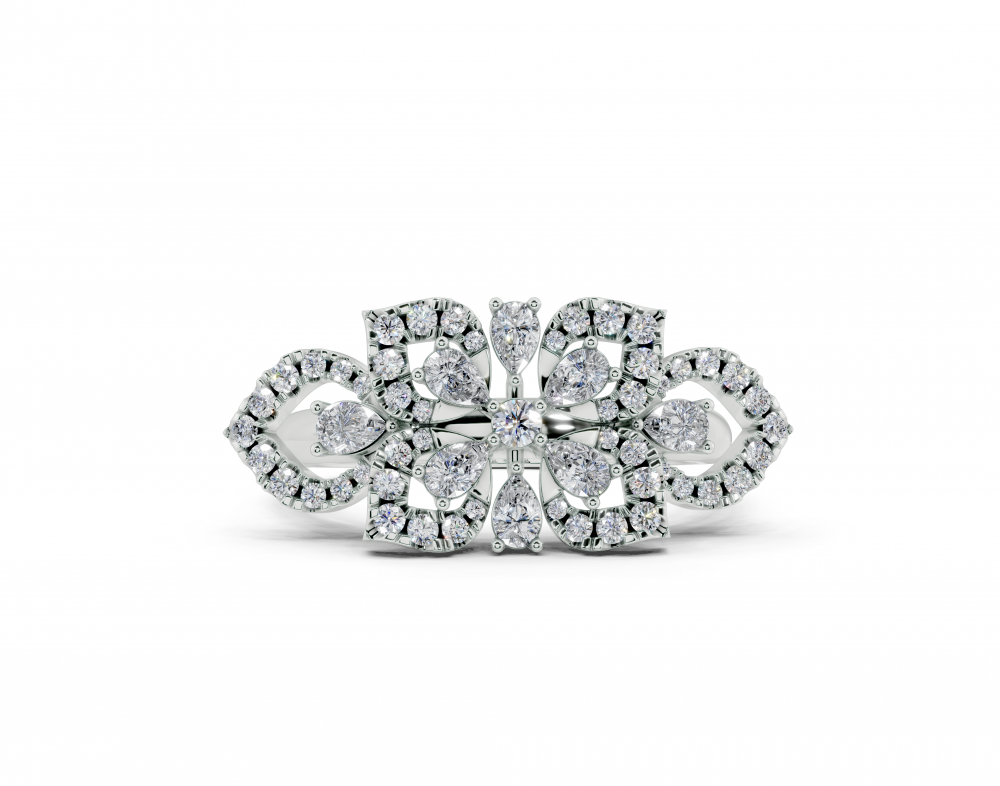 Inel din aur alb de 14K, cu diamante Pear de 0.36 ct. si diamante Rotunde de 0.26 ct. Greutatea inelului este de aproximativ 3.50 grame.