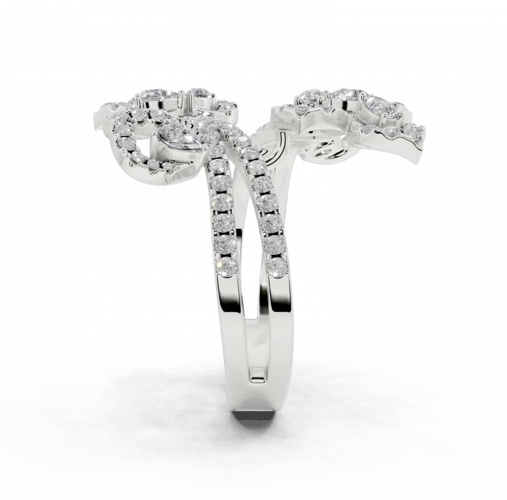 Inel din aur alb de 14K, cu diamante Pear Cut de 0.36ct si diamante rotunde de 0.55ct. Greutatea inelului este de aproximativ 5.50 grame.