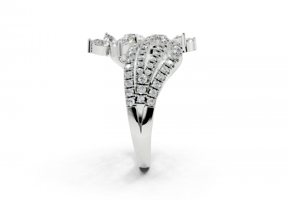 Inel din aur alb de 14K, cu diamante Pear Cut de 0.39ct si diamante rotunde de 0.48ct. Greutatea inelului este de aproximativ 4 grame. Inelul se poate face pe comanda si din aur de 18K. Putem modifica design-ul in functie de bugetul dumneavoastra.
