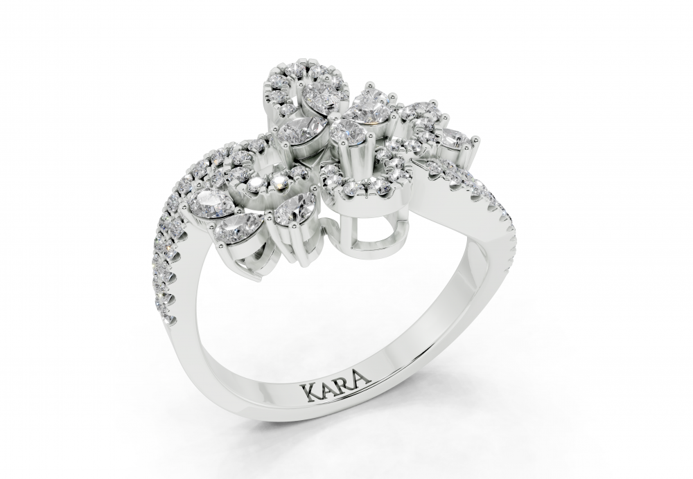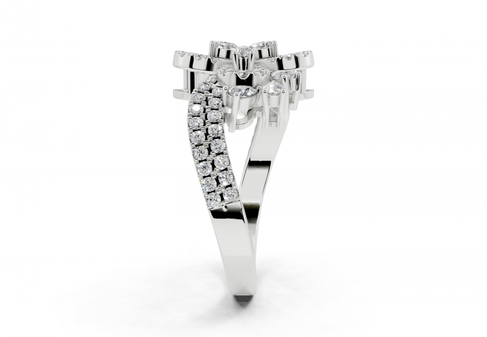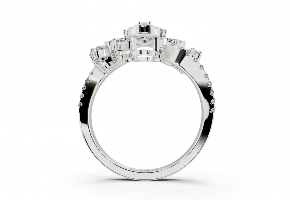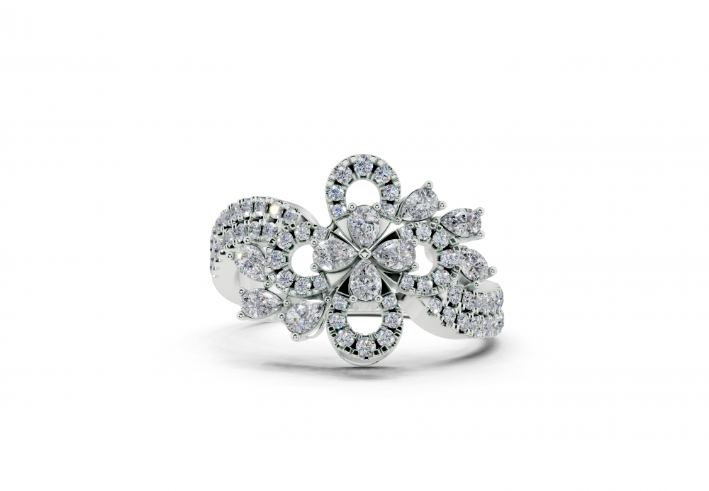 Inel din aur alb de 14K, cu diamante Pear Cut de 0.40ct si diamante rotunde de 0.34ct. Greutatea inelului este de aproximativ 4 grame.