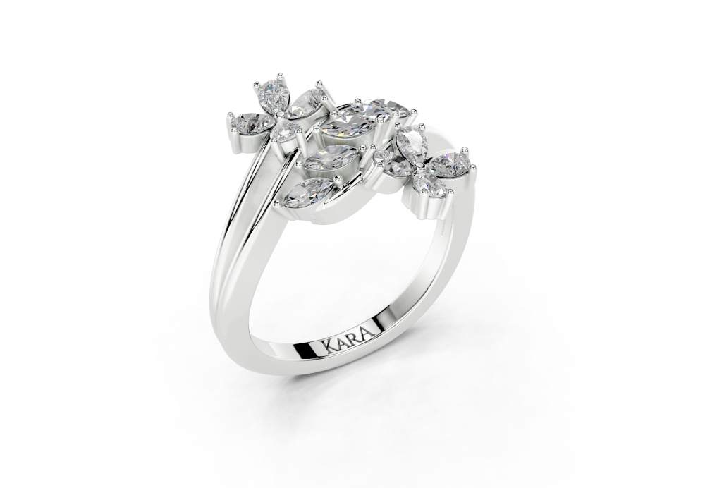 Inel din aur alb de 14K, cu diamante Pear de 0.41 ct. si diamante Rotunde de 0.19 ct. Greutatea inelului este de aproximativ 3.50 grame.