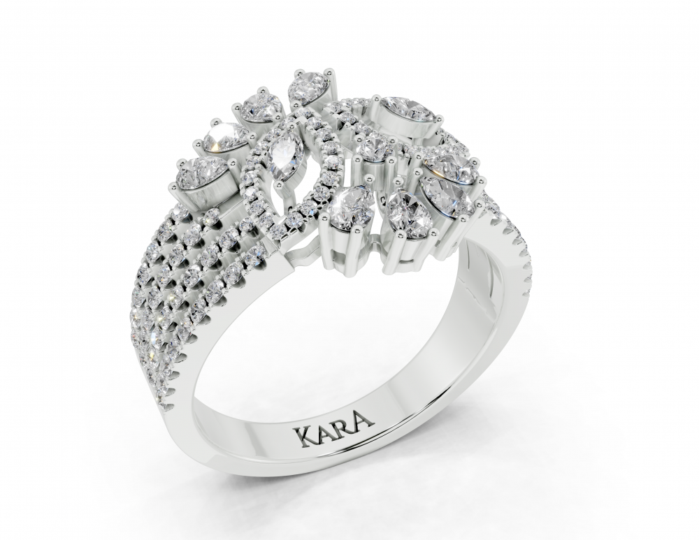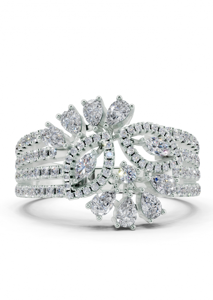 Inel din aur alb de 14K, cu diamante Pear Cut de 0.41ct, diamante Marquise Cut de 0.05ct si diamante rotunde de 0.44ct. Greutatea inelului este de aproximativ 6.50 grame. Inelul se poate face pe comanda si din aur de 18K. Putem modifica design-ul in functie de bugetul dumneavoastra.