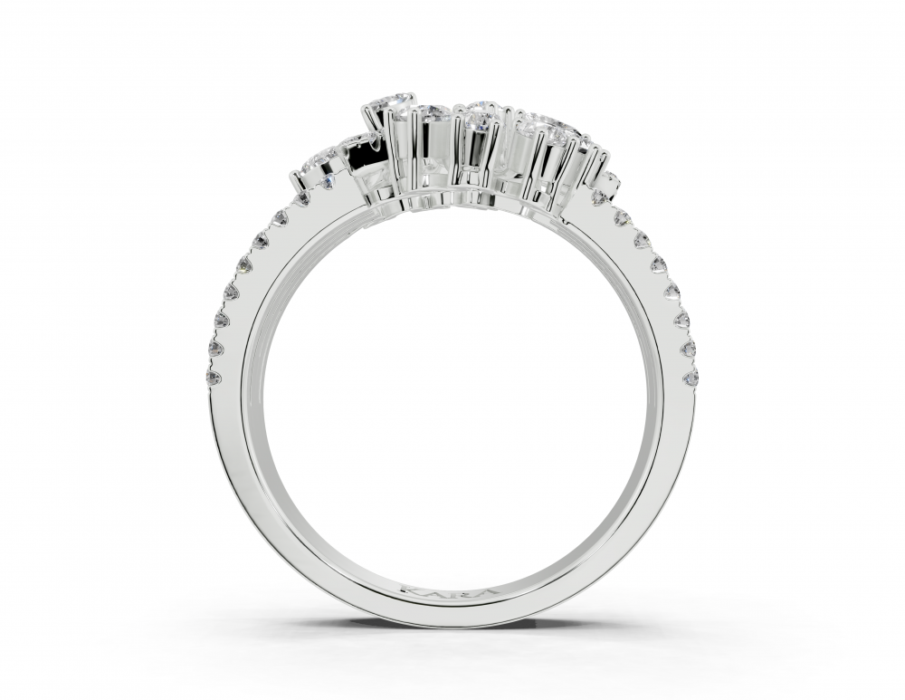 Inel din aur alb de 14K, cu diamante Pear Cut de 0.41ct, diamante Marquise Cut de 0.05ct si diamante rotunde de 0.44ct. Greutatea inelului este de aproximativ 6.50 grame.