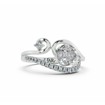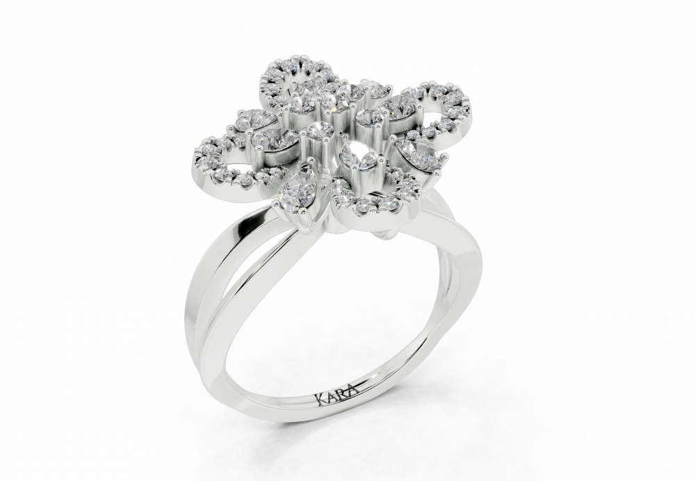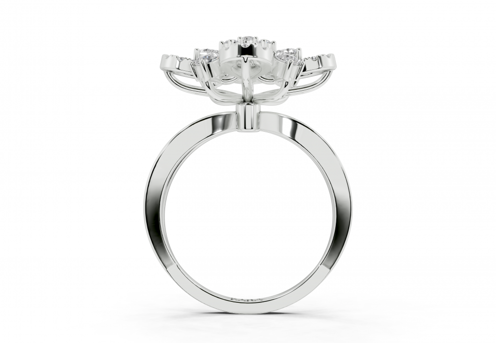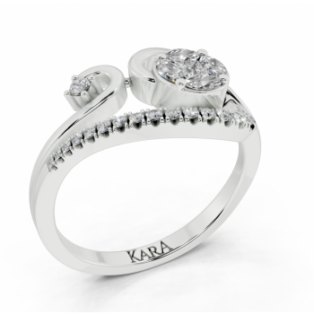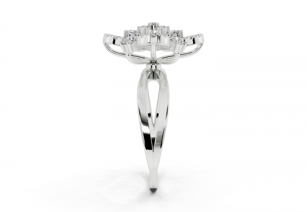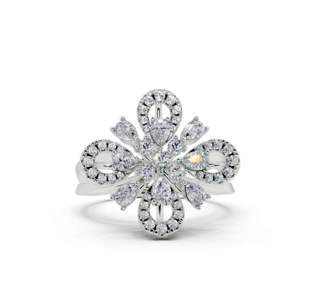 Inel din aur alb de 14K, cu diamante Pear Cut de 0.43ct si diamante rotunde de 0.21ct. Greutatea inelului este de aproximativ 4.50 grame.