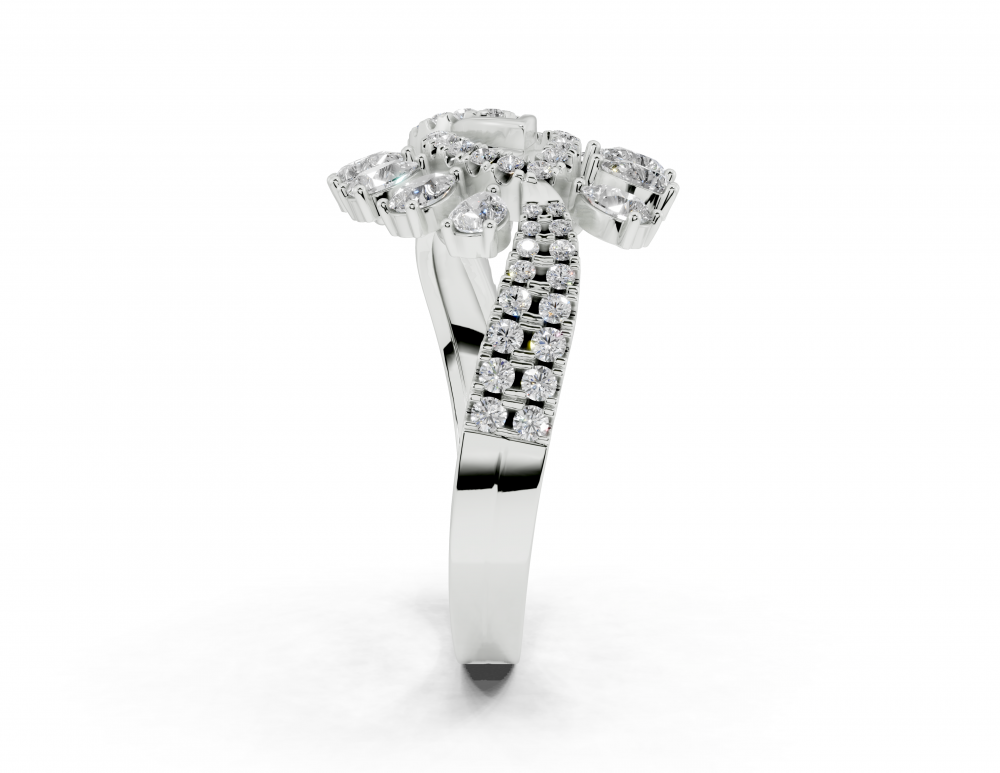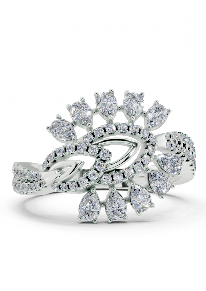 Inel din aur alb de 14K, cu diamante Pear Cut de 0.52ct si diamante rotunde de 0.23ct. Greutatea inelului este de aproximativ 4 grame. Inelul se poate face pe comanda si din aur de 18K. Putem modifica design-ul in functie de bugetul dumneavoastra.