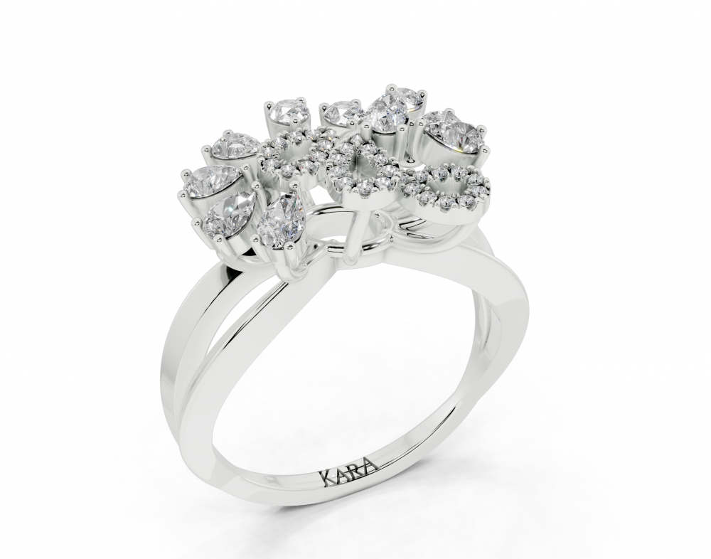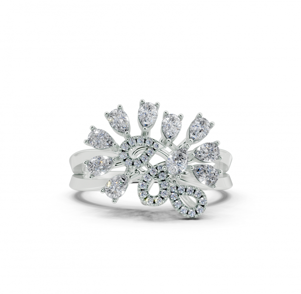 Inel din aur alb de 14K, cu diamante Pear Cut de 0.56ct si diamante rotunde de 0.06ct. Greutatea inelului este de aproximativ 3.50 grame. Inelul se poate face pe comanda si din aur de 18K. Putem modifica design-ul in functie de bugetul dumneavoastra.