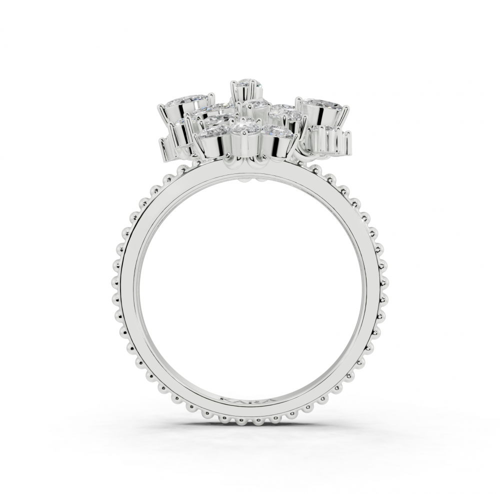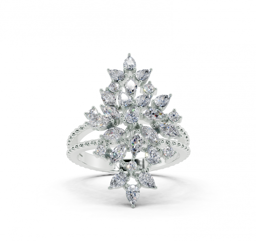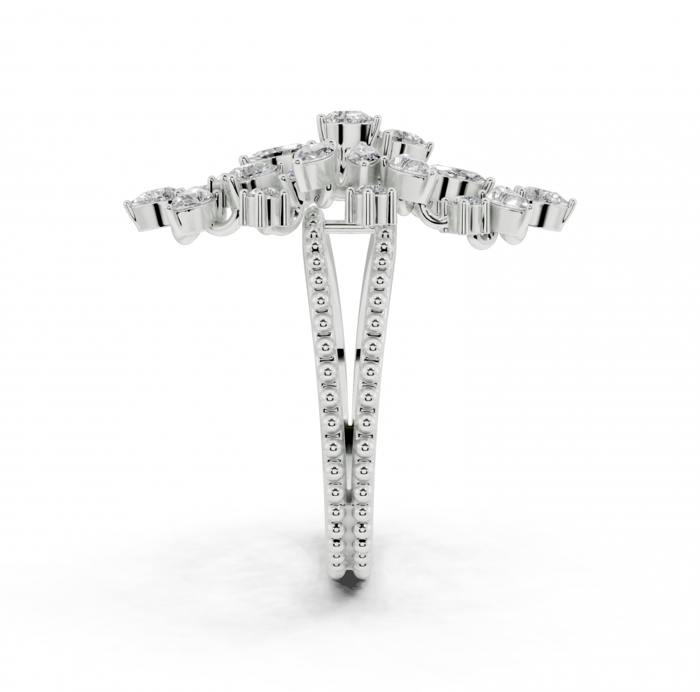 Inel din aur alb de 14K, cu diamante Pear Cut de 0.57ct, diamante Marquise Cut de 0.37ct si diamante rotunde de 0.12ct. Greutatea inelului este de aproximativ 2.00 grame. Inelul se poate face pe comanda si din aur de 18K. Putem modifica design-ul in functie de bugetul dumneavoastra.