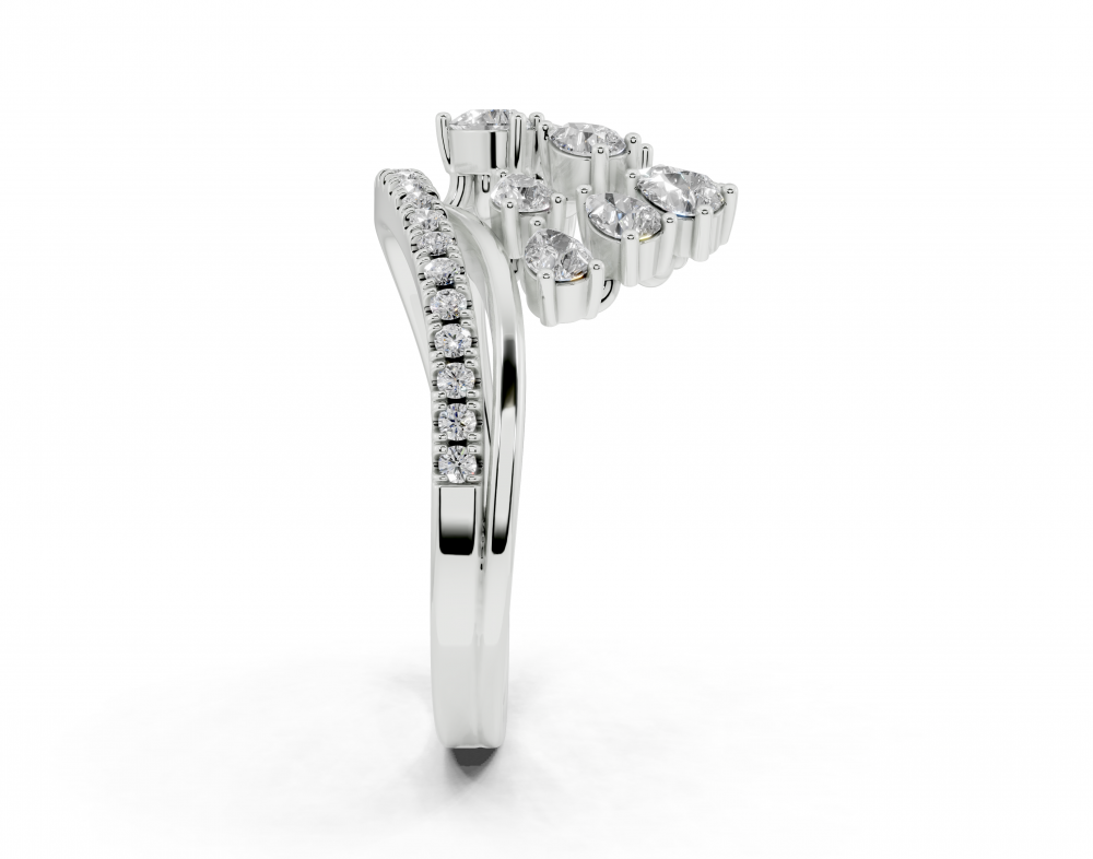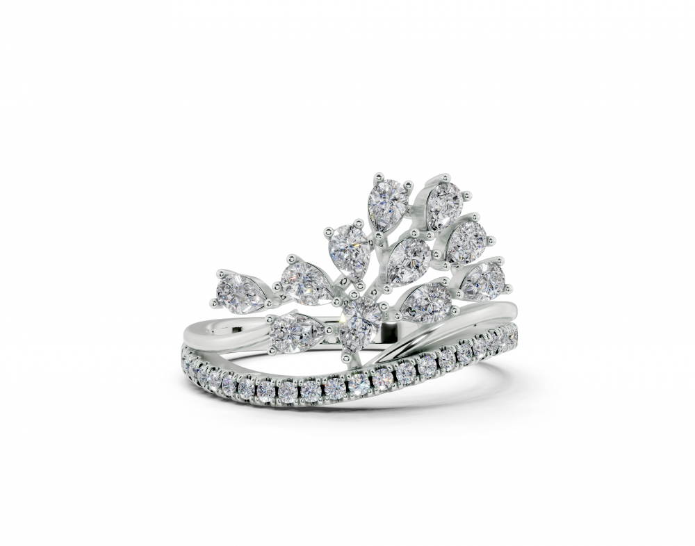 Inel din aur alb de 14K, cu diamante Pear Cut de 0.61ct si diamante rotunde de 0.13ct. Greutatea inelului este de aproximativ 3.00 grame. Inelul se poate face pe comanda si din aur de 18K. Putem modifica design-ul in functie de bugetul dumneavoastra.