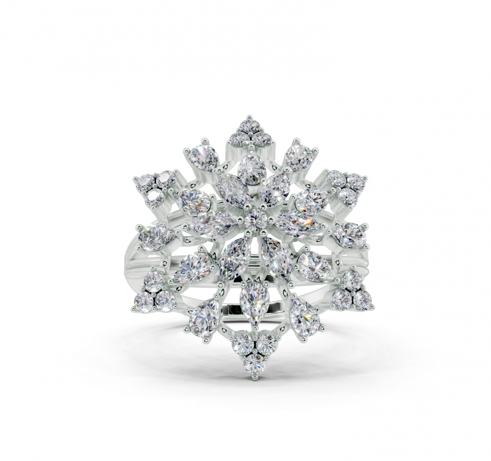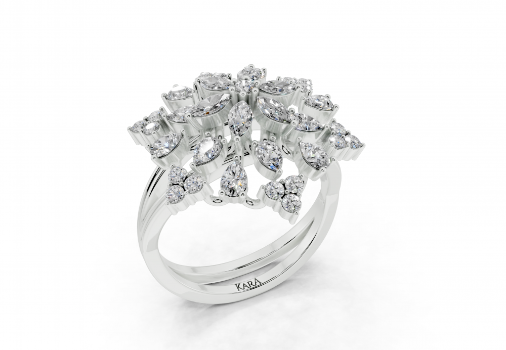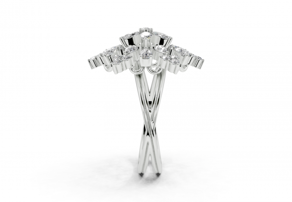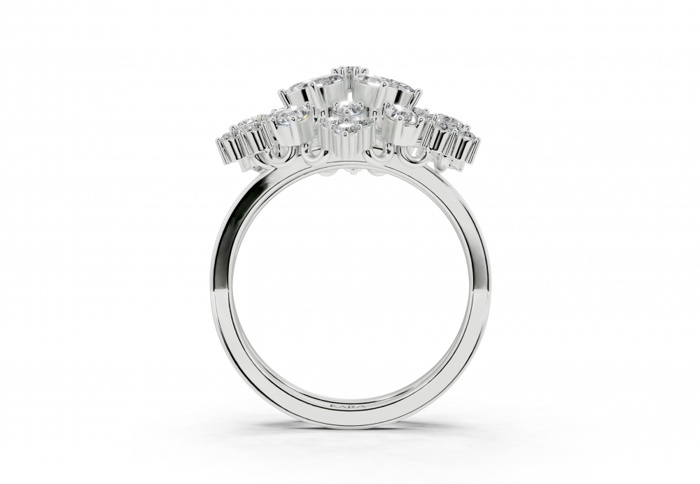 Inel din aur alb de 14K, cu diamante Pear Cut de 0.62ct, diamante Marquise Cut de 0.22ct si diamante rotunde de 0.24ct. Greutatea inelului este de aproximativ 4 grame. Inelul se poate face pe comanda si din aur de 18K. Putem modifica design-ul in functie de bugetul dumneavoastra.