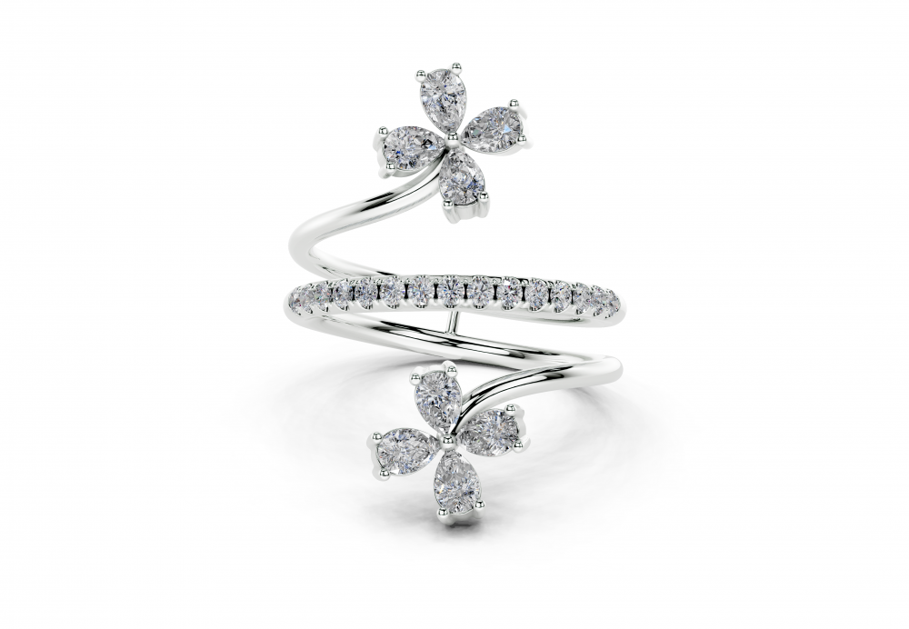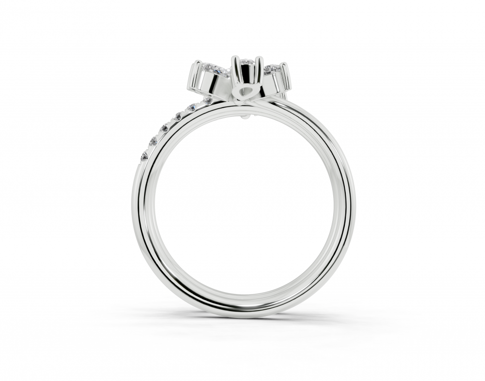 Inel din aur alb de 14K, cu diamante Pear Cut de 0.66ct si diamante rotunde de 0.19ct. Greutatea inelului este de aproximativ 4 grame. Inelul se poate face pe comanda si din aur de 18K. Putem modifica design-ul in functie de bugetul dumneavoastra.