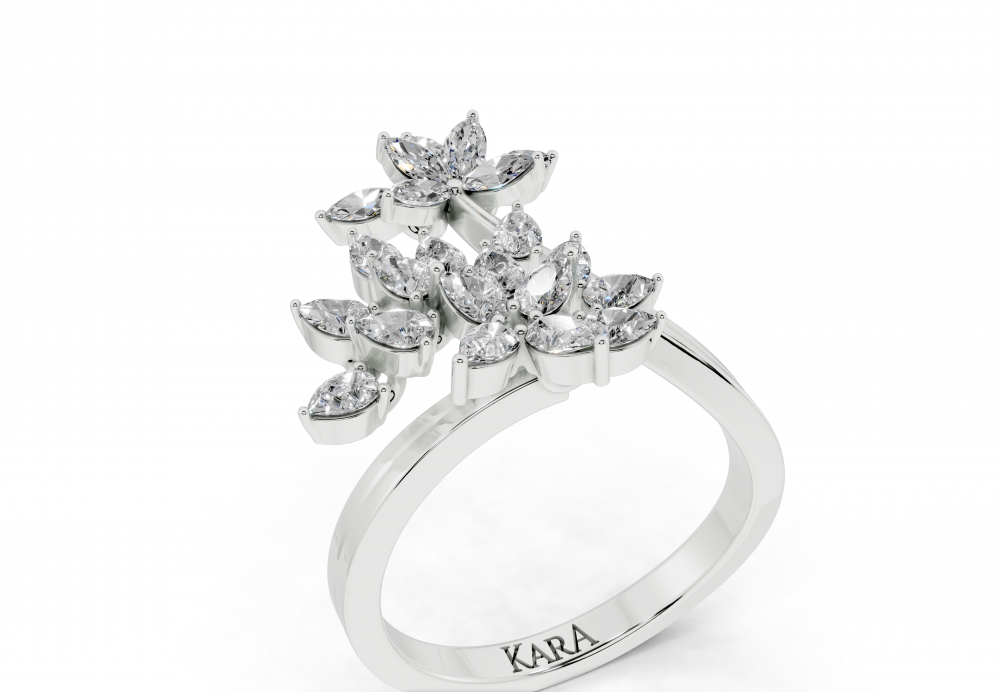 Inel din aur alb de 14K, cu diamante Pear Cut de 0.77ct si diamante Marquise Cut de 0.26ct. Greutatea inelului este de aproximativ 4 grame.